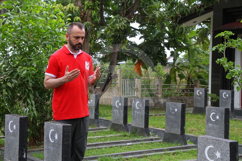 Türk Kızılay, ''İslam Dünyası Yetimler Günü''nde Endonezya'nın Açe bölgesindeki yetimlere iftar verdi. Programa katılan Türk Kızılay Genel Müdürü Dr. İbrahim Altan (sağda) ile Türk Kızılay Genel Müdür Yardımcısı Alper Küçük (sağ 2) Banda Açe'de bulunan Osmanlı Mezarlığı'nı (Selahaddin Mezarlığı) ziyaret etti. ( Khalis Surry - Anadolu Ajansı )Khalis Surry