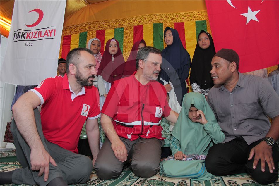 Türk Kızılay, ''İslam Dünyası Yetimler Günü''nde Endonezya'nın Açe bölgesindeki yetimlere iftar verdi. İftara, Türk Kızılay Genel Müdürü Dr. İbrahim Altan (ortada) ile Genel Müdür Yardımcısı Alper Küçük (solda) de katıldı. ( Khalis Surry - Anadolu Ajansı )Khalis Surry