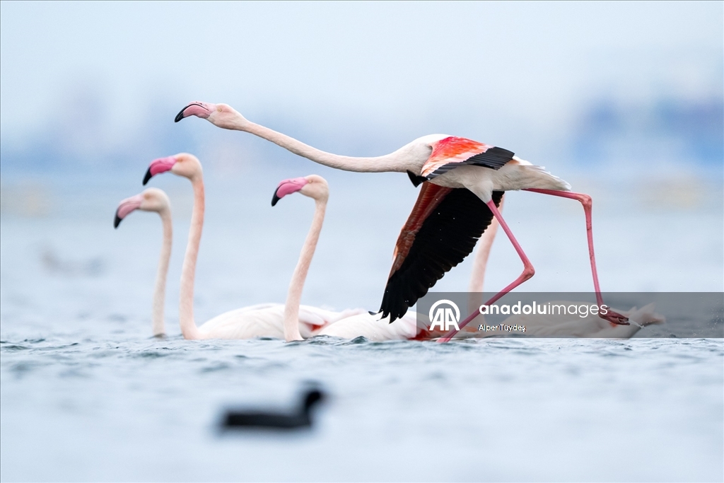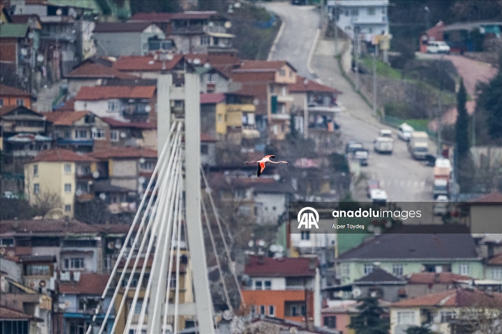 Kocaeli Körfezi’nde flamingolar kıyılarda görüntülendi