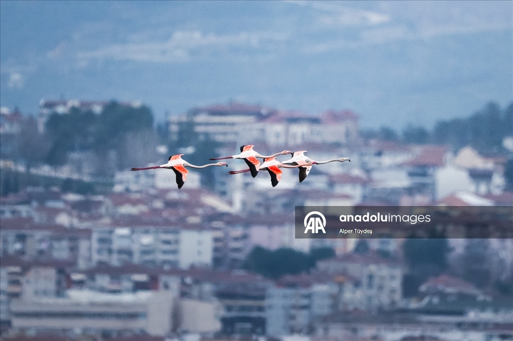 Kocaeli Körfezi’nin sığ kıyı bölgeleri, flamingolar için önemli bir yaşam alanı oluşturuyor. Flamingolar, diğer su kuşlarıyla birlikte kıyı boyunca besleniyor. Bölge, özellikle kış aylarında ve göç dönemlerinde birçok farklı kuş türüne ev sahipliği yapmayı sürdürüyor.