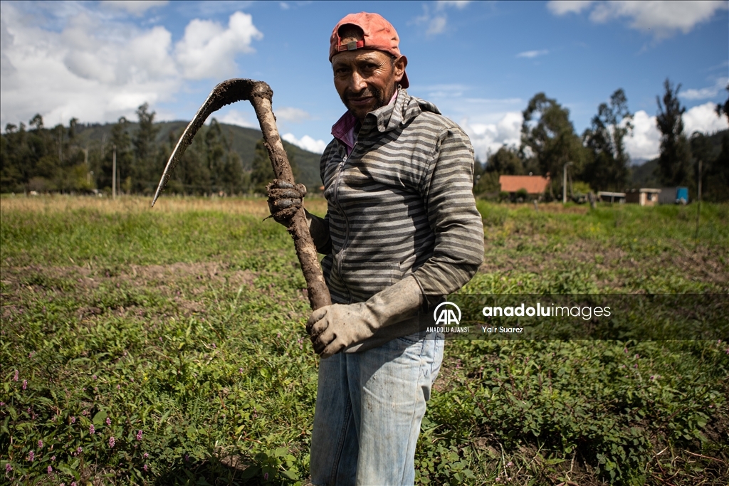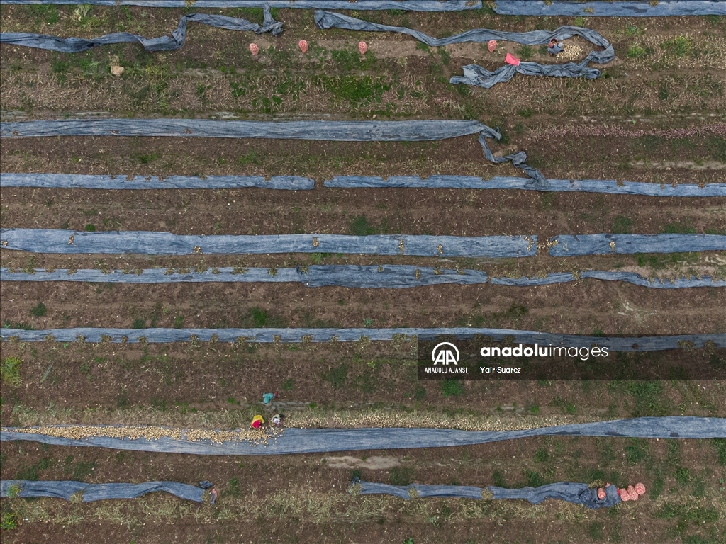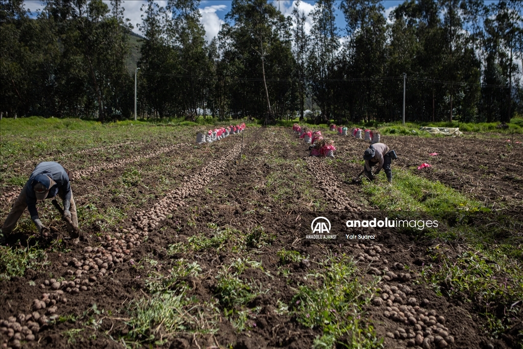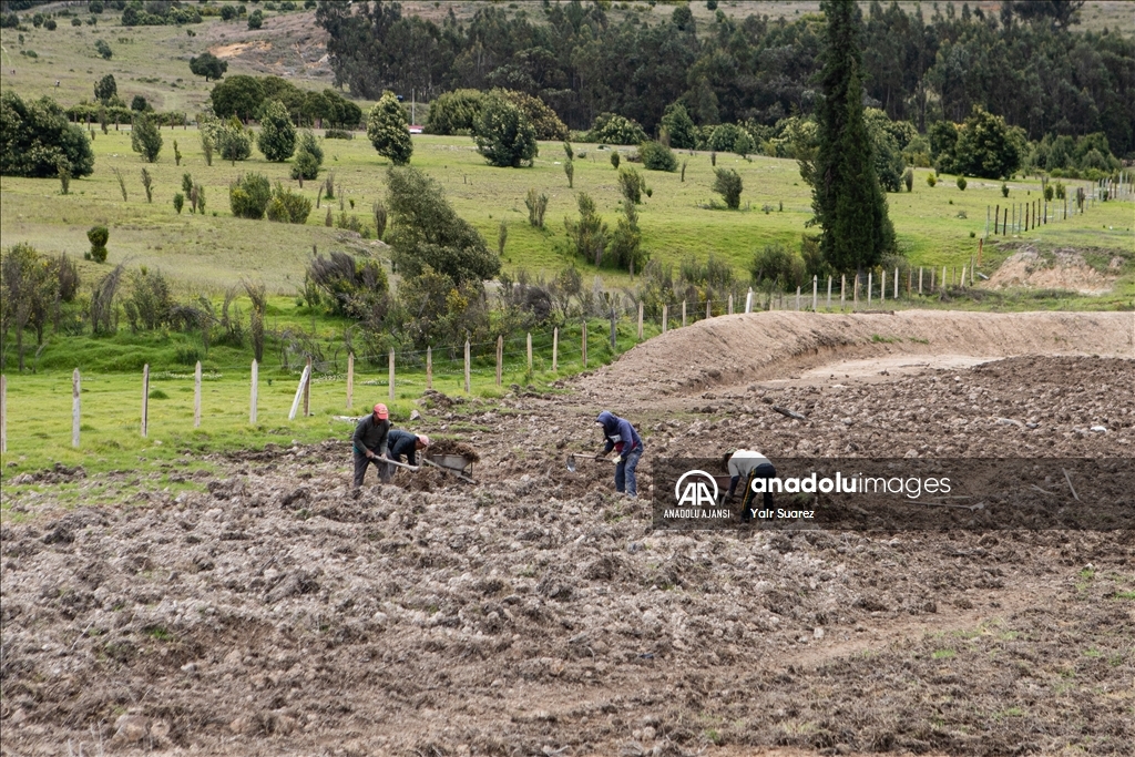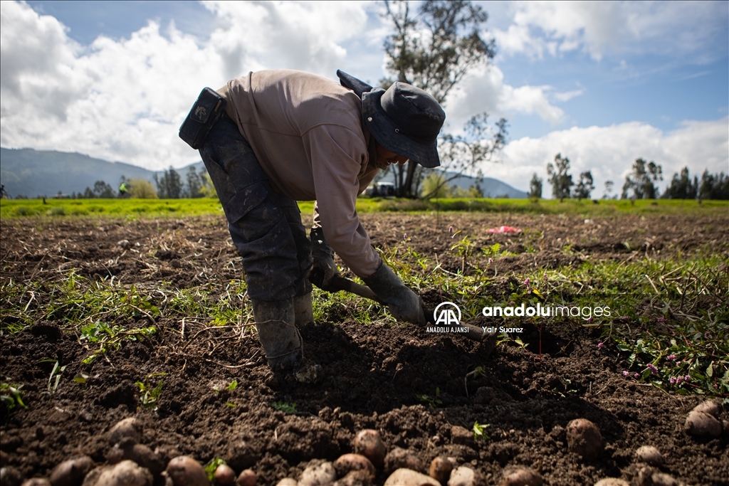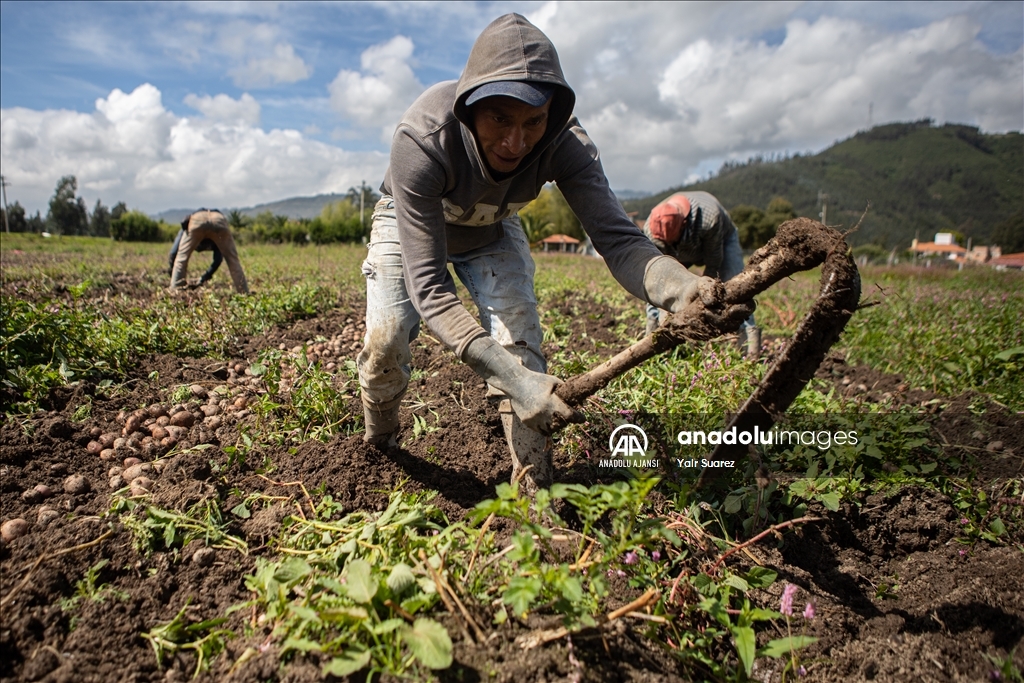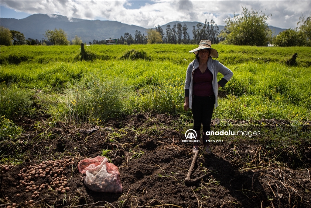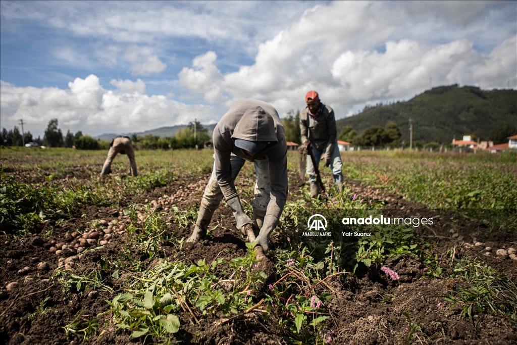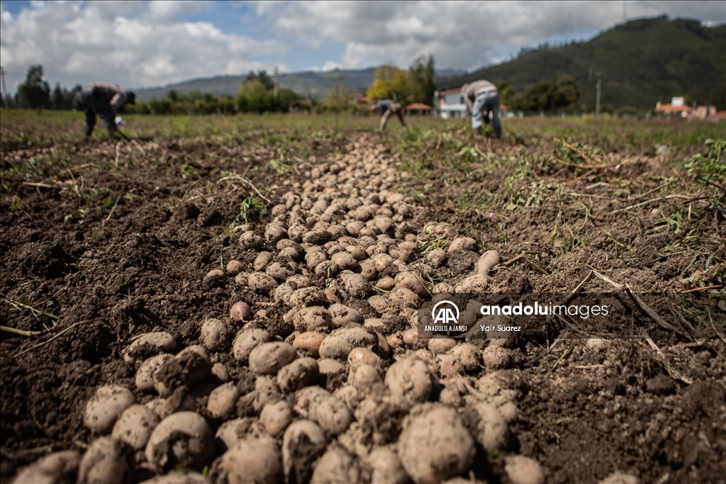 Kolombiya'nın Boyaca şehrinde Dünya Çiftçiler Günü kapsamında çiftçiler patates hasatlarını toplarken görüntülendi.