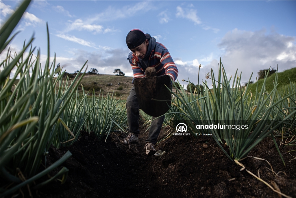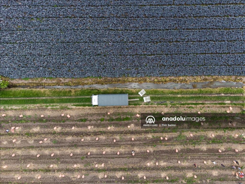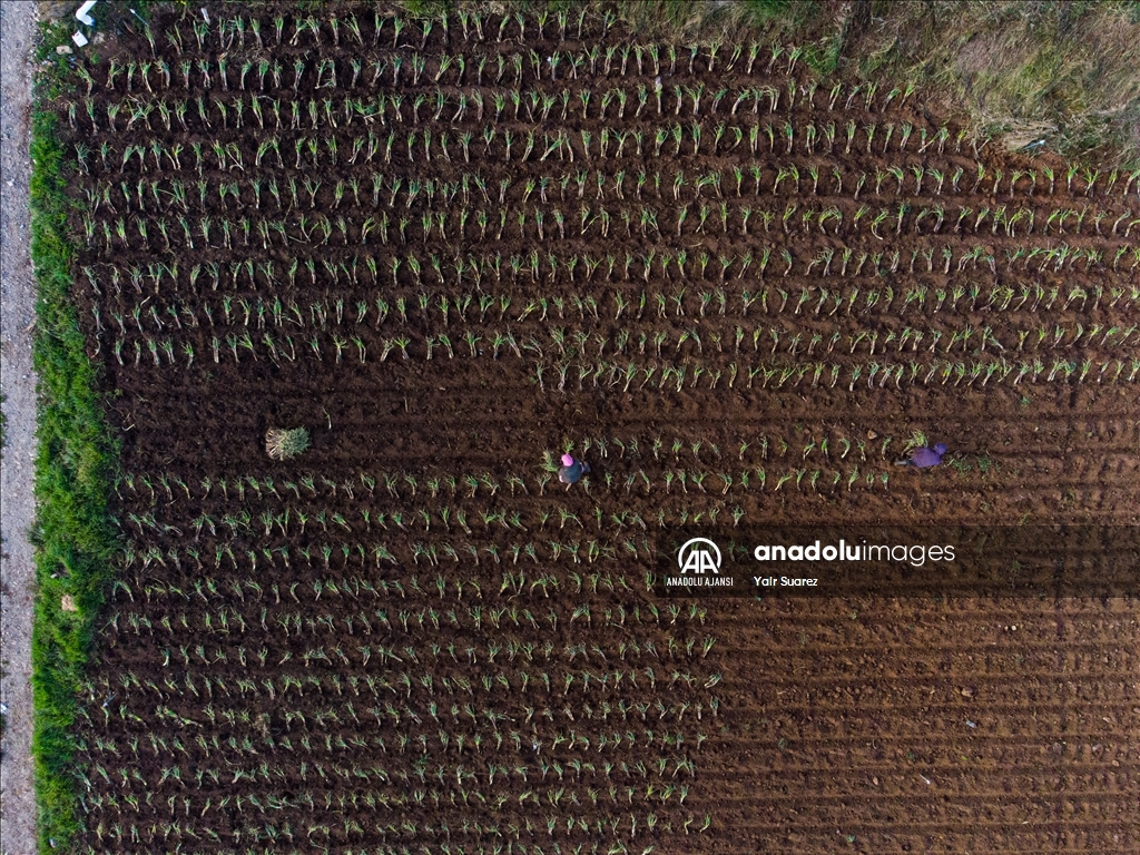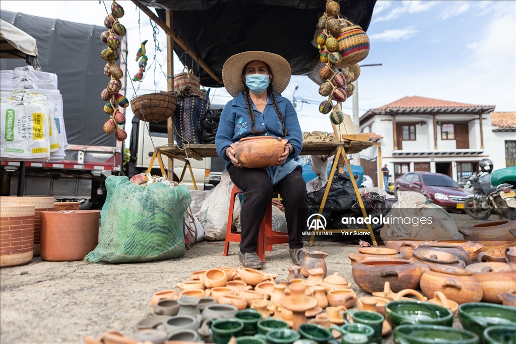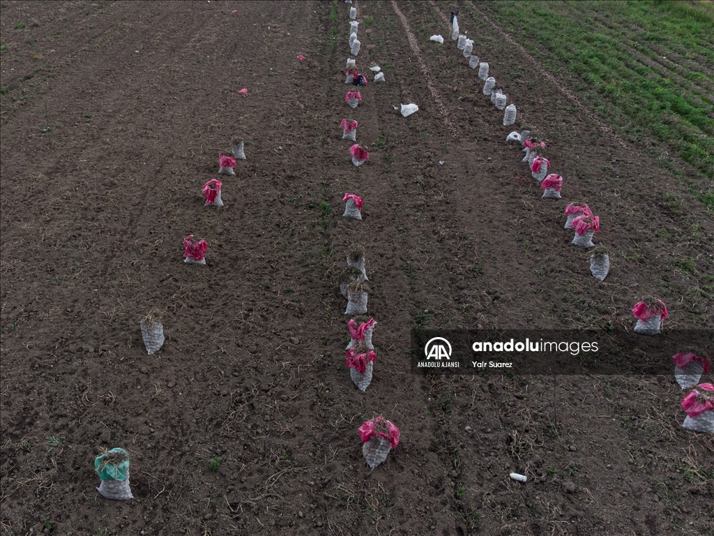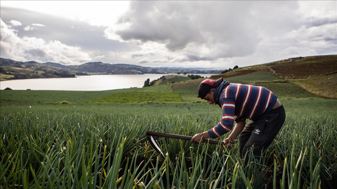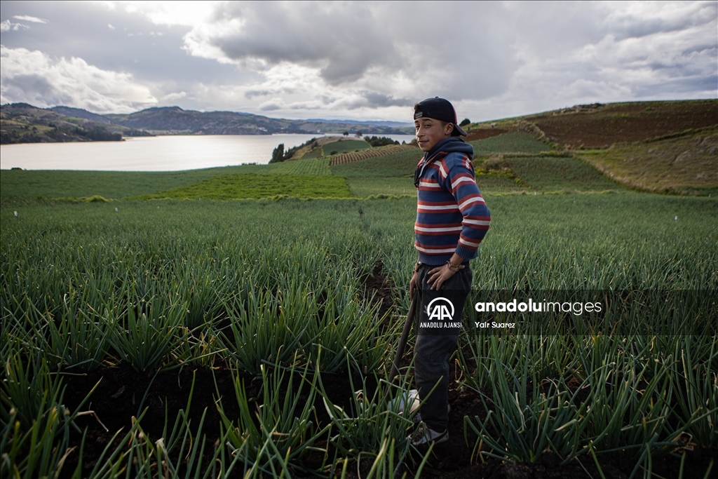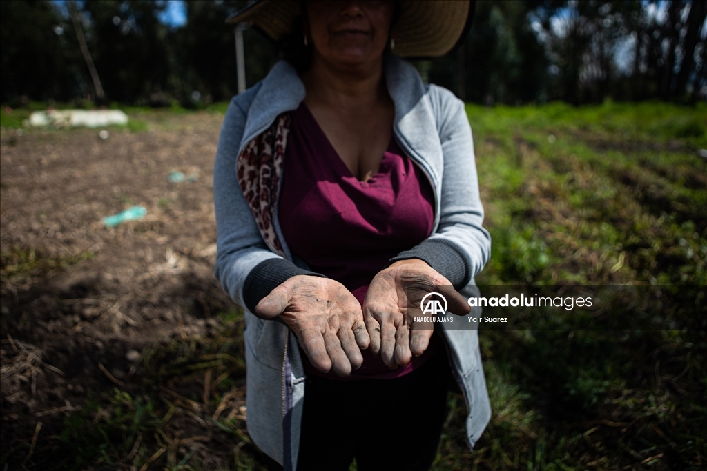 Kolombiya'nın Boyaca şehrinde Dünya Çiftçiler Günü kapsamında çiftçiler patates hasatlarını toplarken görüntülendi.