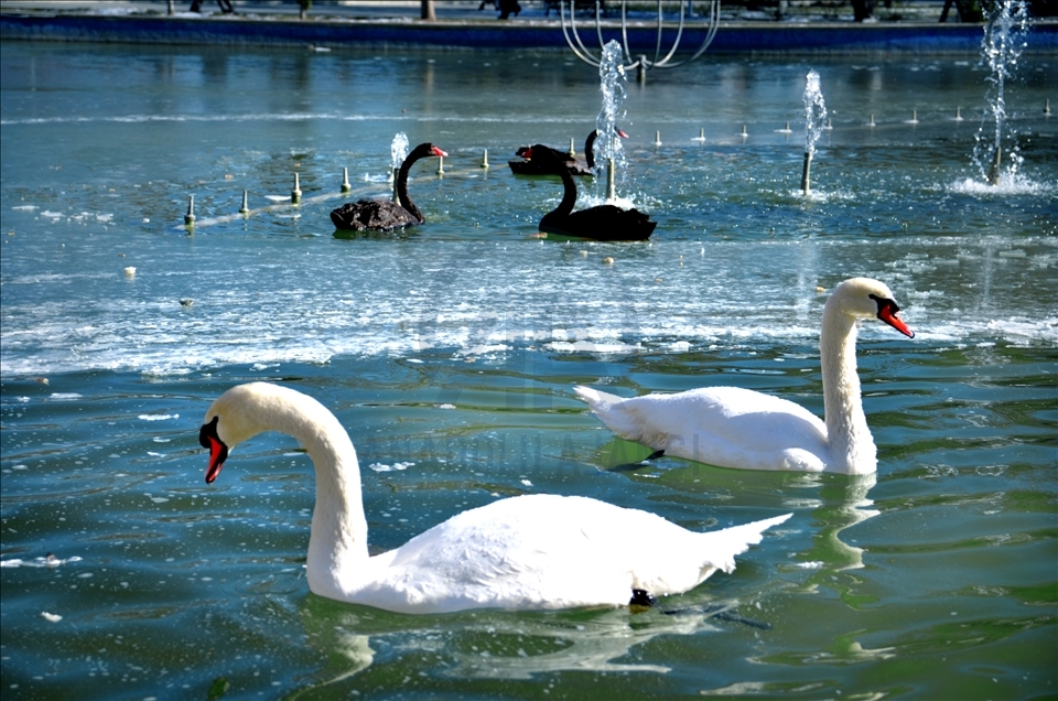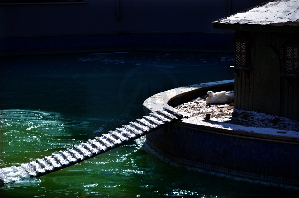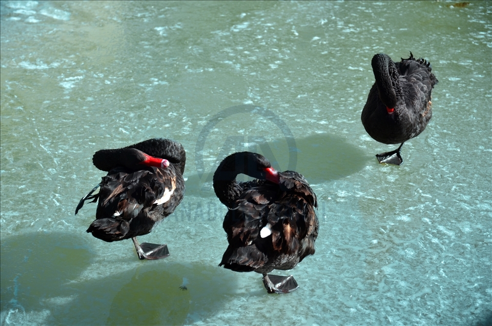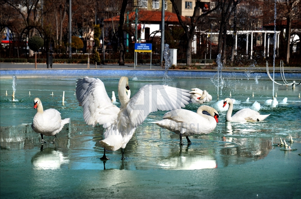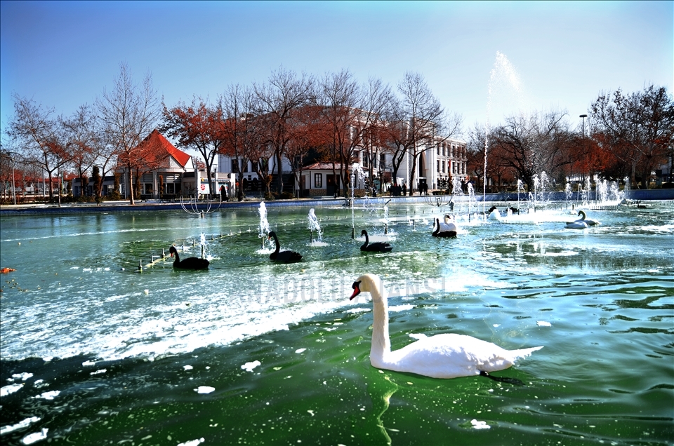 Konya'da hava sıcaklıklarının düşmesiyle kent merkezinde bulunan Kültür Park’ın süs havuzu buz tuttu. Havuzda yaşayan kuğular, buz kütleleri arasında güzel görüntüler oluşturdu. ( Serhat Çetinkaya - Anadolu Ajansı )Serhat Çetinkaya