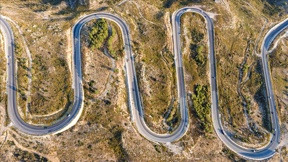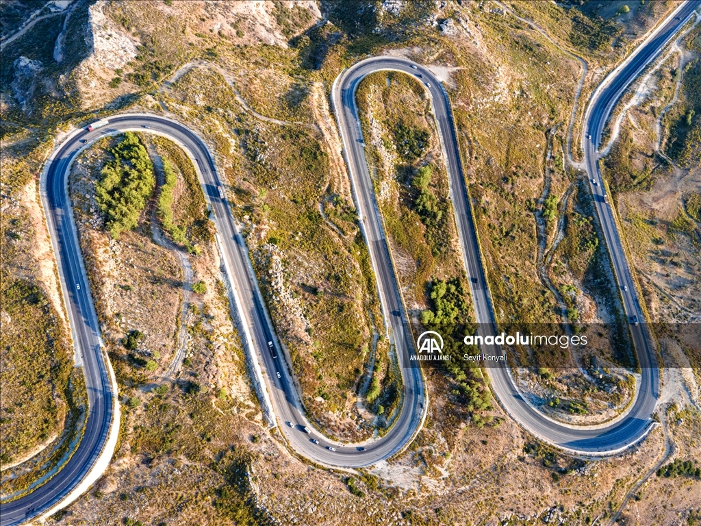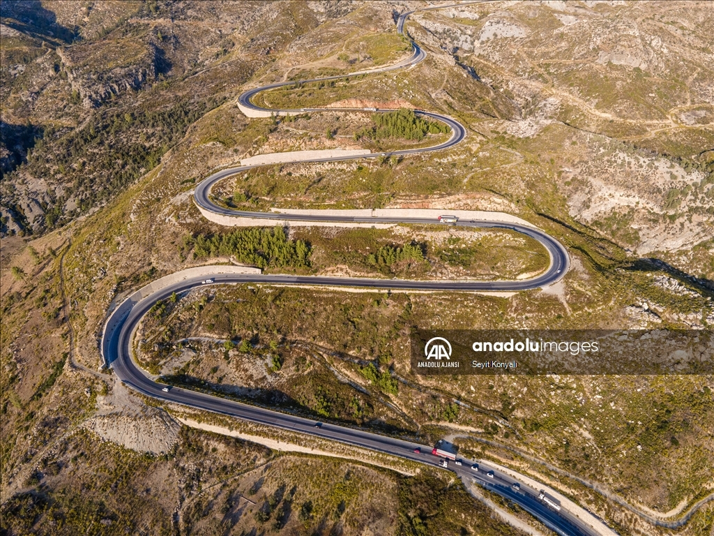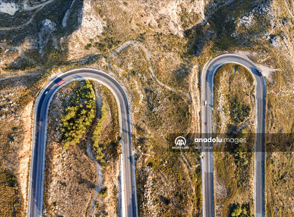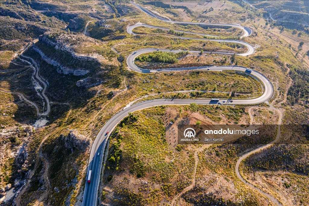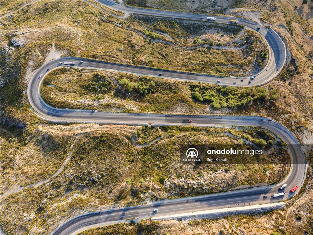 Konya ile Antalya arasında bulunan Taşağıl ilçesindeki kıvrımlı yollar drone ile görüntülendi.