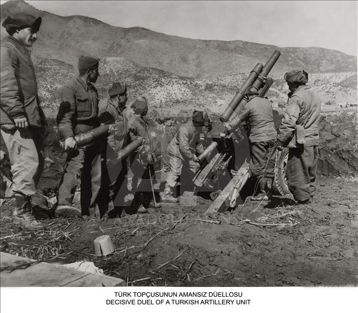 Milli Savunma Bakanlığı, Kore'ye Türk askerinin gönderilişinin yıl dönümü dolayısıyla, Genelkurmay Askeri Tarih ve Stratejik Etüt (ATASE) Daire Başkanlığı arşivlerindeki fotoğrafları Anadolu Ajansı ile paylaştı. Kore'de bulunan Türk askeri top atışı yaptı. (Arşiv) ( Genelkurmay Başkanlığı - Anadolu Ajansı )Genelkurmay Başkanlığı