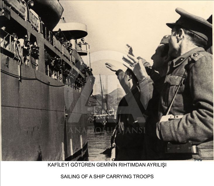 Milli Savunma Bakanlığı, Kore'ye Türk askerinin gönderilişinin yıl dönümü dolayısıyla, Genelkurmay Askeri Tarih ve Stratejik Etüt (ATASE) Daire Başkanlığı arşivlerindeki fotoğrafları Anadolu Ajansı ile paylaştı. Kore Savaşına katılan askerler gemiyle rıhtımdan ayrıldı. (Arşiv) ( Genelkurmay Başkanlığı - Anadolu Ajansı )Genelkurmay Başkanlığı