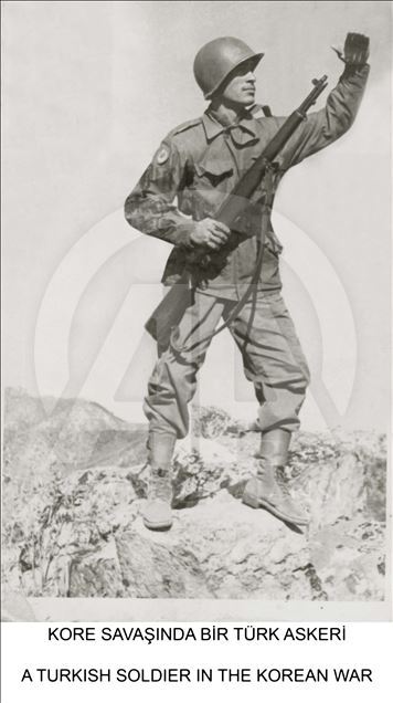 Milli Savunma Bakanlığı, Kore'ye Türk askerinin gönderilişinin yıl dönümü dolayısıyla, Genelkurmay Askeri Tarih ve Stratejik Etüt (ATASE) Daire Başkanlığı arşivlerindeki fotoğrafları Anadolu Ajansı ile paylaştı. Kore Savaşına katılan bir Türk askeri (Arşiv) ( Genelkurmay Başkanlığı - Anadolu Ajansı )Genelkurmay Başkanlığı