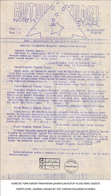 Milli Savunma Bakanlığı, Kore'ye Türk askerinin gönderilişinin yıl dönümü dolayısıyla, Genelkurmay Askeri Tarih ve Stratejik Etüt (ATASE) Daire Başkanlığı arşivlerindeki fotoğrafları Anadolu Ajansı ile paylaştı. Kore'de Türk askerleri tarafından Kutup Yıldızı isimli gazete çıkarıldı. (Arşiv) ( Genelkurmay Başkanlığı - Anadolu Ajansı )Genelkurmay Başkanlığı