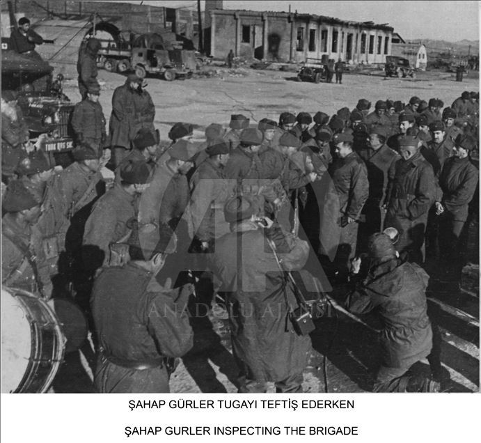 Milli Savunma Bakanlığı, Kore'ye Türk askerinin gönderilişinin yıl dönümü dolayısıyla, Genelkurmay Askeri Tarih ve Stratejik Etüt (ATASE) Daire Başkanlığı arşivlerindeki fotoğrafları Anadolu Ajansı ile paylaştı. Şahap Gürler, Türk Tugayını teftiş etti. (Arşiv) ( Genelkurmay Başkanlığı - Anadolu Ajansı )Genelkurmay Başkanlığı
