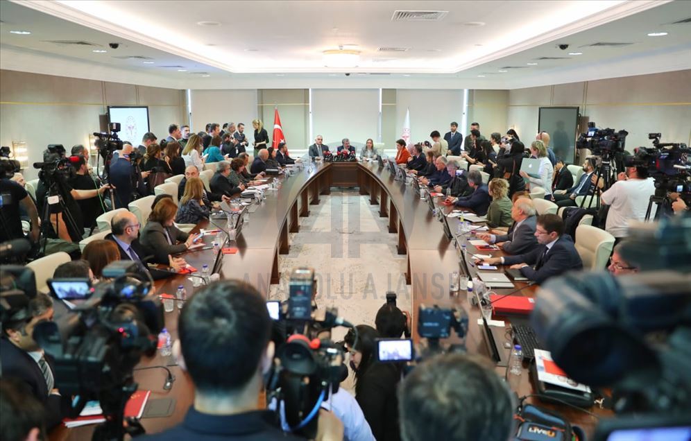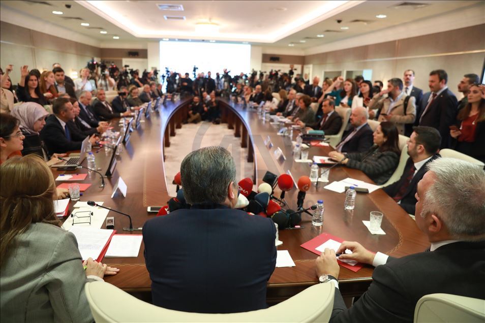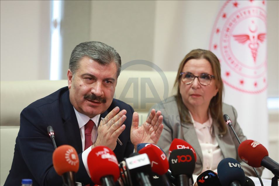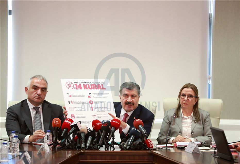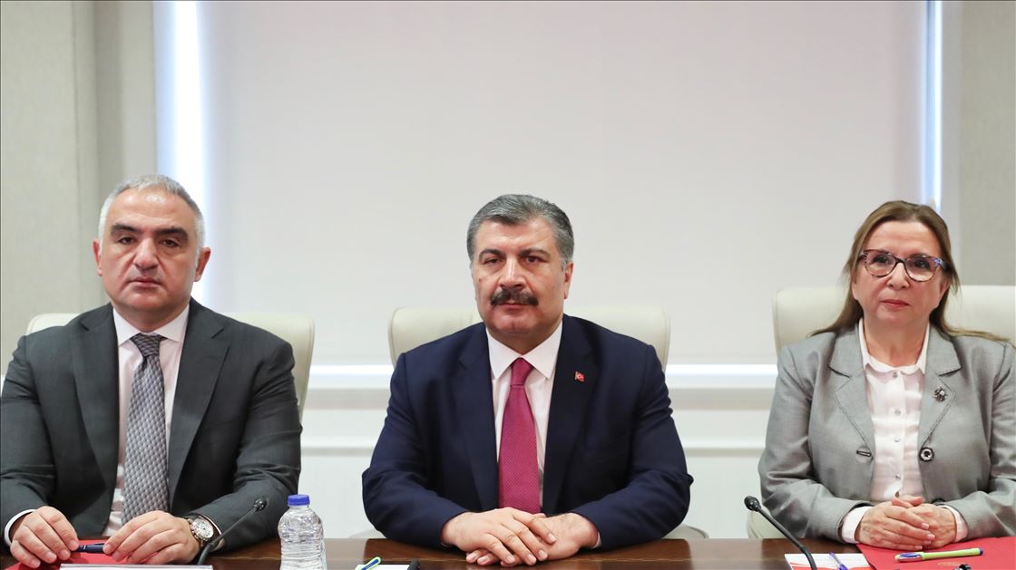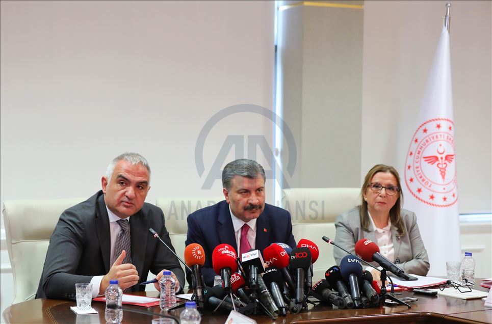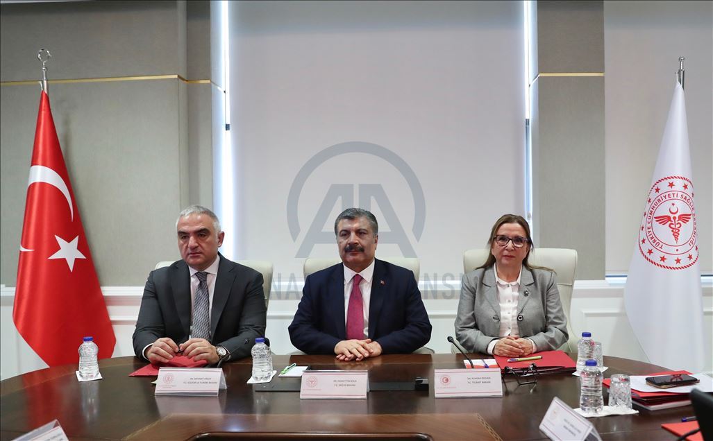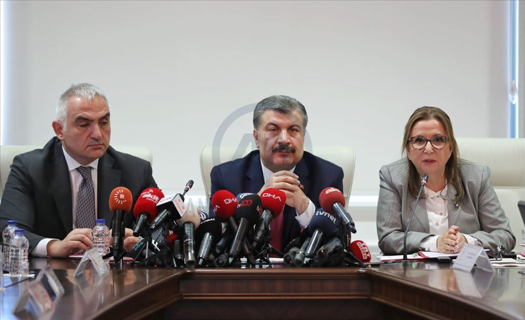 Sağlık Bakanı Fahrettin Koca, Kültür ve Turizm Bakanı Mehmet Nuri Ersoy ve Ticaret Bakanı Ruhsar Pekcan, Koronavirüs Bilim Kurulu toplantısı sonunda basın açıklaması yaptı. ( Muhammed Yaylalı - Anadolu Ajansı )Muhammed Yaylalı