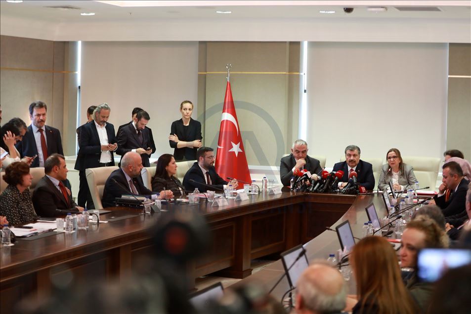 Sağlık Bakanı Fahrettin Koca, Kültür ve Turizm Bakanı Mehmet Nuri Ersoy ve Ticaret Bakanı Ruhsar Pekcan, Koronavirüs Bilim Kurulu toplantısına katldı. ( Muhammed Yaylalı - Anadolu Ajansı )Muhammed Yaylalı