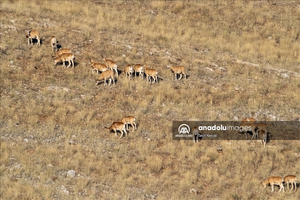 Doğa Koruma ve Milli Parklar 8. Bölge Müdürlüğü bünyesindeki 60 bin hektarlık alanda bulunan ve 24 saat kameralarla gözetim altında tutulan yaban koyunları, 1000 ile 1700 rakımlı dağ silsilesinin yer aldığı bozkır yapılarda gruplar halinde yaşıyor. (Seyit Konyalı - Anadolu Ajansı)Seyit Konyalı