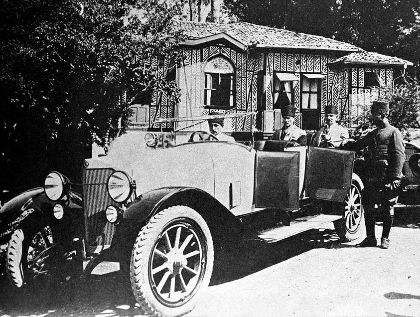 Atatürk (araçta arkada solda) makam otomobili ile Çankaya Köşkü'nden ayrılırken (Arşiv) (BYEGM - Anadolu Ajansı)BYEGM