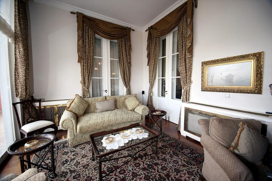 Fotoğrafta 3 cephesi Ankara taşları ile çevrili sütunlu tarihi yapı Pembe Köşk'ün üst katındaki salon görülüyor. (Arşiv) (Rıza Özel - Anadolu Ajansı)Rıza Özel