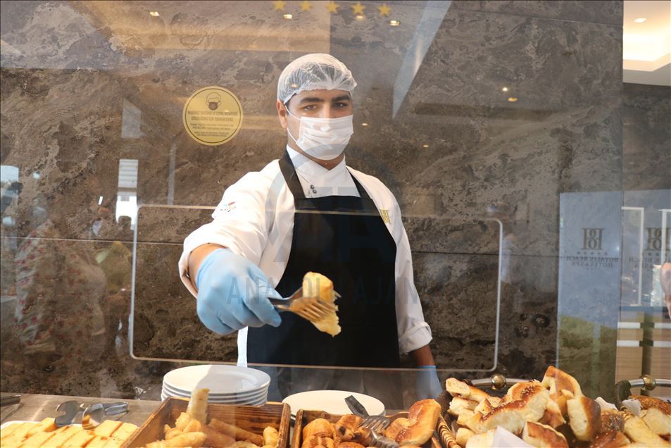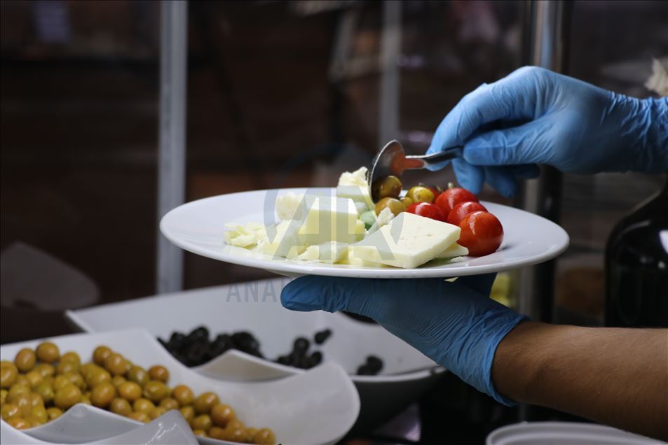 Yeni tip koronavirüs (Kovid-19) salgınının yayılmasını önlemek amacıyla otellerde açık büfe servisini personelin yapmaya başlaması, sektörün en önemli sorunlarından gıda israfını azalttı. ( Yusuf Şahbaz - Anadolu Ajansı )Yusuf Şahbaz