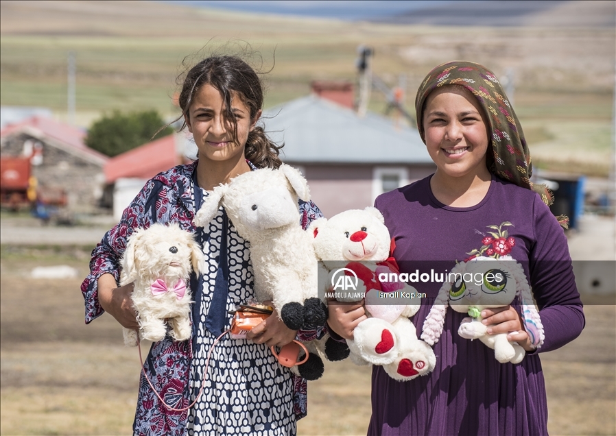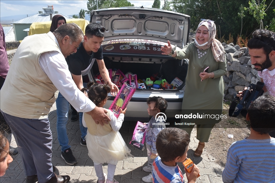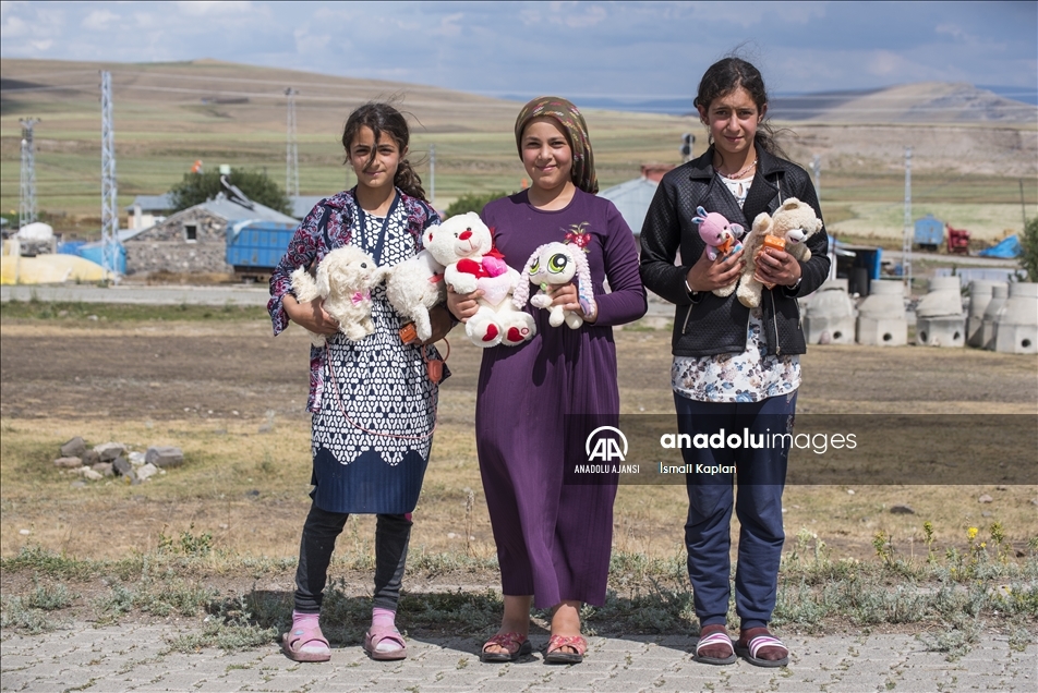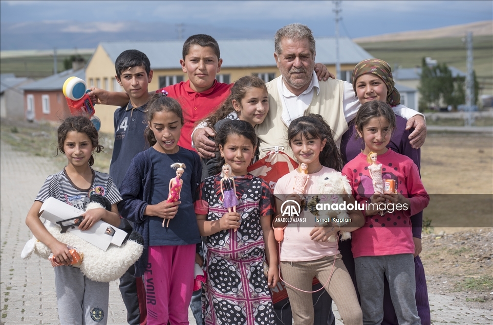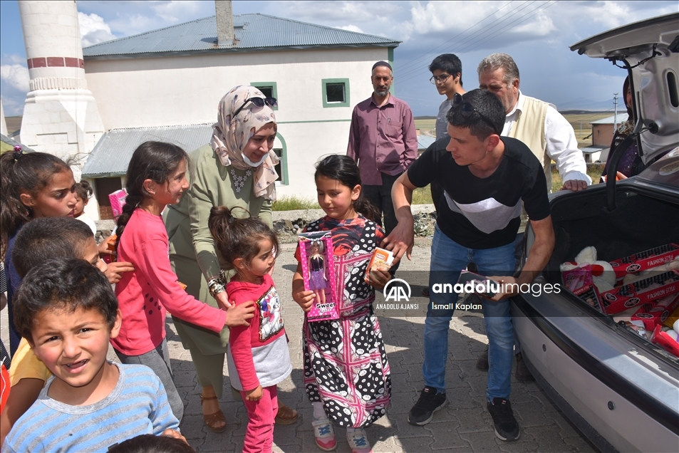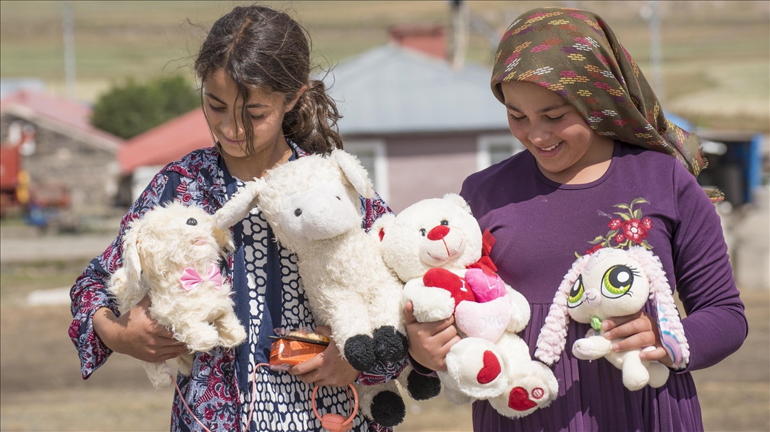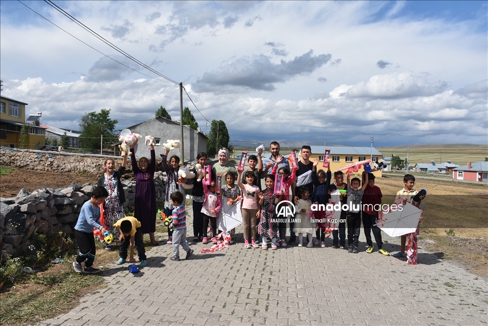 Kars'ta bir grup gönüllü, sosyal medyadan "Bir oyuncak da sen ver" sloganıyla başlattıkları yardım kampanyasıyla köy çocuklarına Kurban Bayramı'nda oyuncak dağıttı.