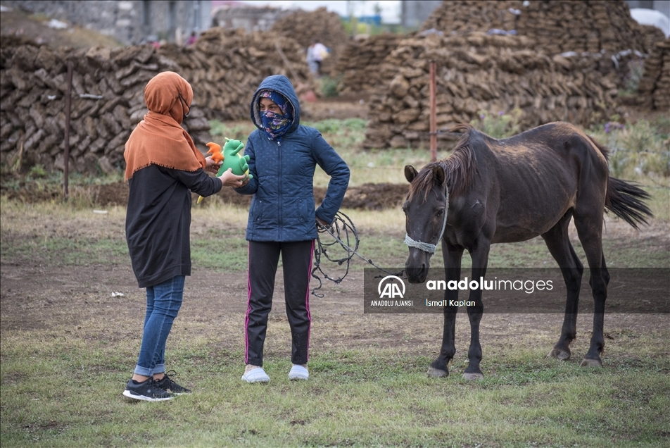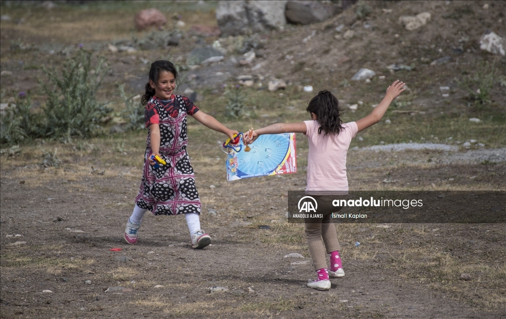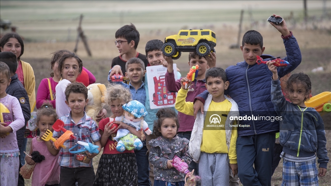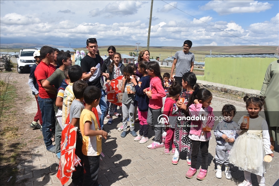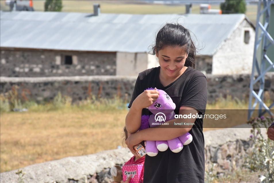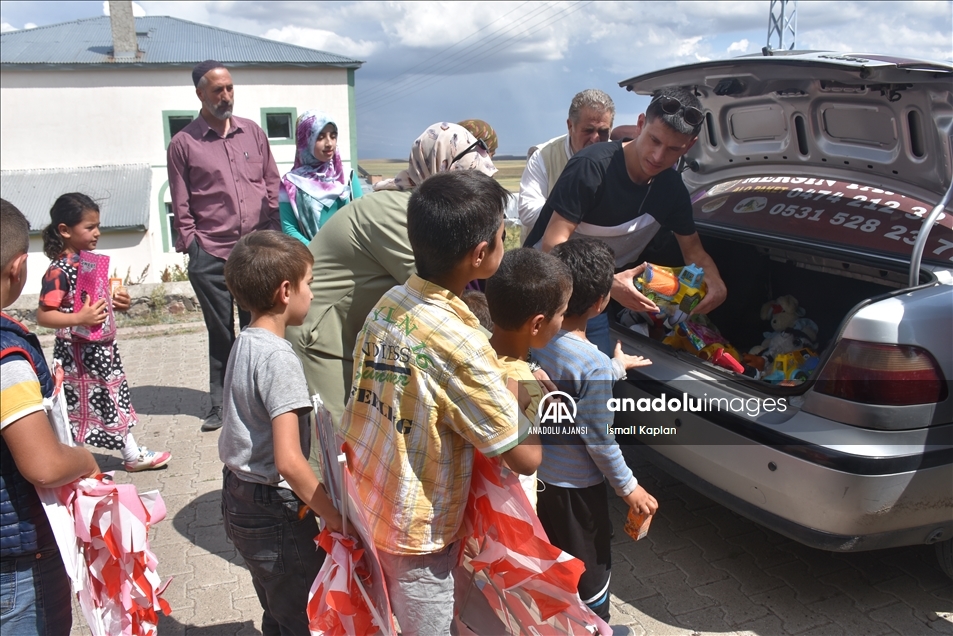 Kars'ta bir grup gönüllü, sosyal medyadan "Bir oyuncak da sen ver" sloganıyla başlattıkları yardım kampanyasıyla köy çocuklarına Kurban Bayramı'nda oyuncak dağıttı.
