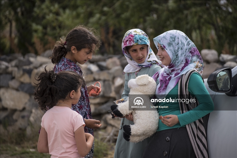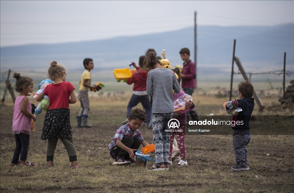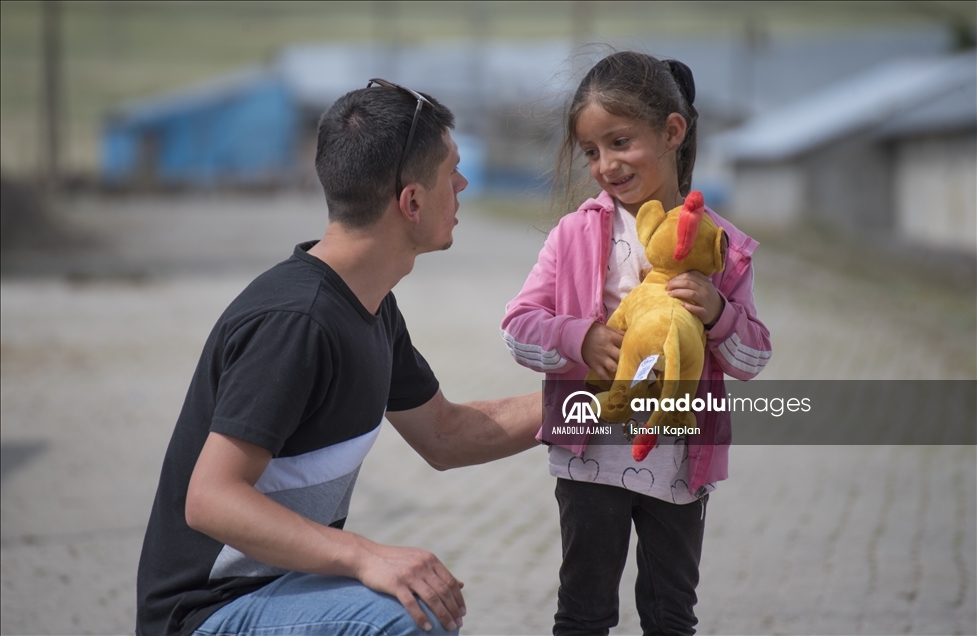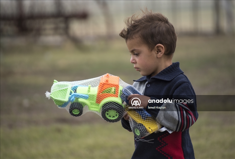 Kars'ta bir grup gönüllü, sosyal medyadan "Bir oyuncak da sen ver" sloganıyla başlattıkları yardım kampanyasıyla köy çocuklarına Kurban Bayramı'nda oyuncak dağıttı. ( İsmail Kaplan - Anadolu Ajansı )İsmail Kaplan