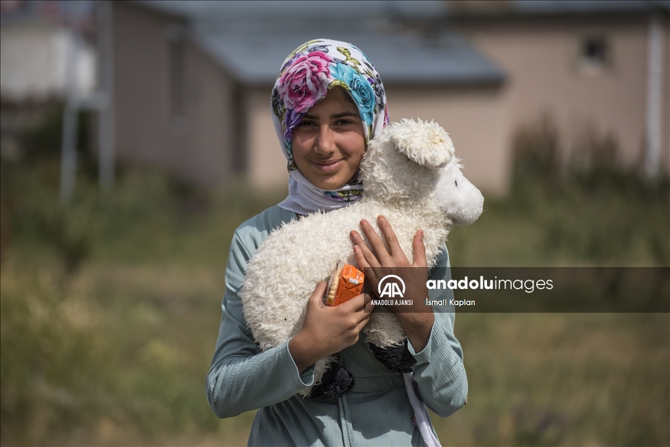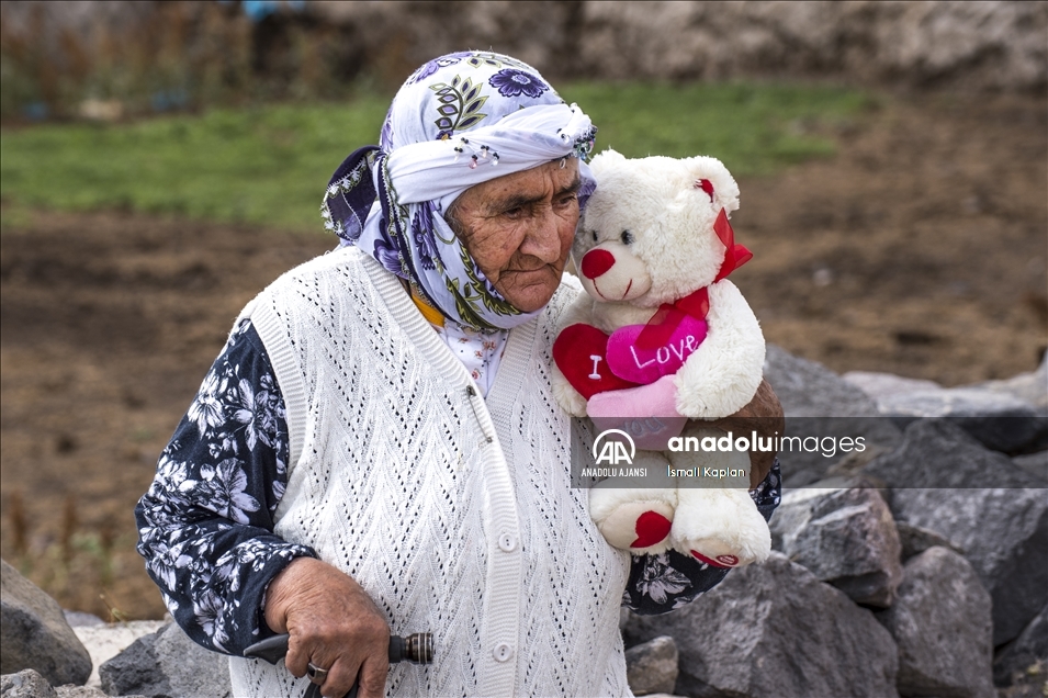 Kars'ta bir grup gönüllü, sosyal medyadan "Bir oyuncak da sen ver" sloganıyla başlattıkları yardım kampanyasıyla köy çocuklarına Kurban Bayramı'nda oyuncak dağıttı. Çocuklar arasına karışarak gönüllülerden kendisi için oyuncak isteyen 75 yaşındaki Nadime Demirbaş ise yardım ekibini duygulandırdı. Ayıcık hediye edilen ve duygulu anlar yaşayan Nadime nine, oyuncağa sarılarak sevinç gözyaşı döktü. ( İsmail Kaplan - Anadolu Ajansı )İsmail Kaplan