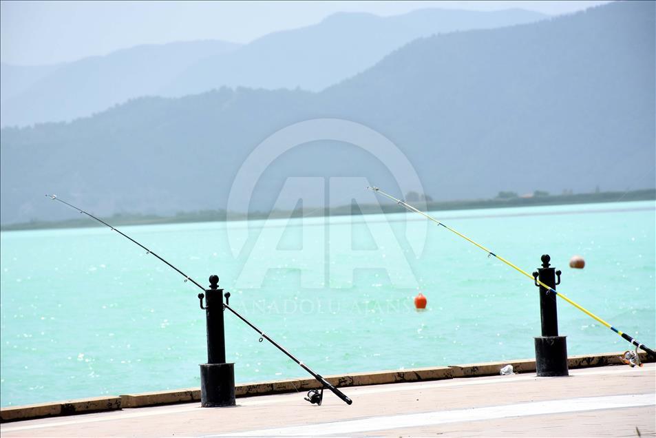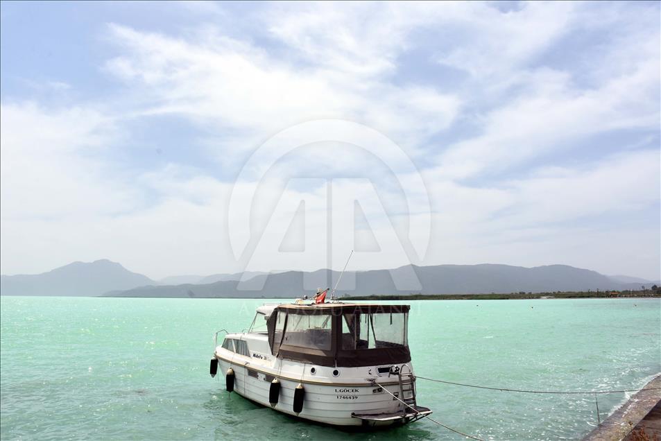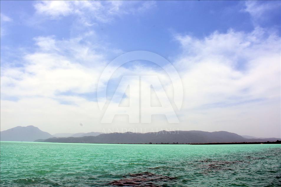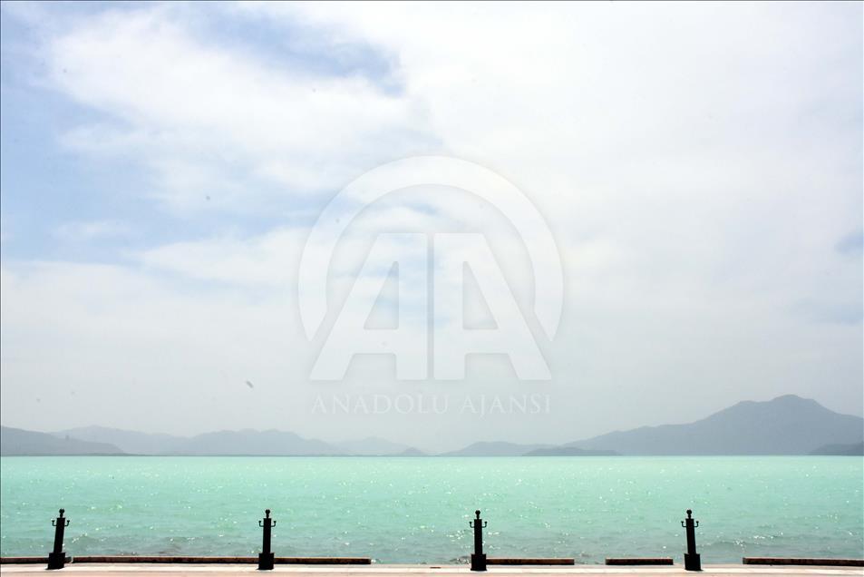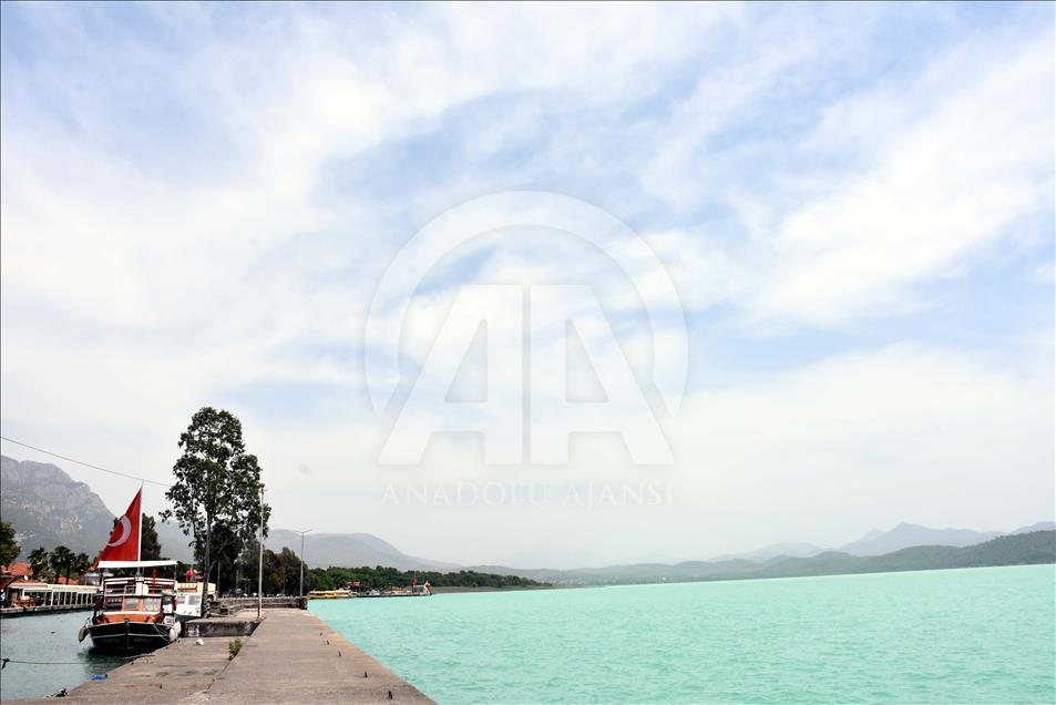 Dalyan Kanalı aracılığıyla Ege Denizi'ne bağlanan Köyceğiz Gölü'nde, suyun rengi turkuaza dönüştü. Göldeki renk değişikliği dolayısıyla bölgede yaşayan vatandaşlar ve tatil için gelen turistler tekne turuna çıkarak fotoğraf çektirdi. ( Durmuş Genç - Anadolu Ajansı )Durmuş Genç