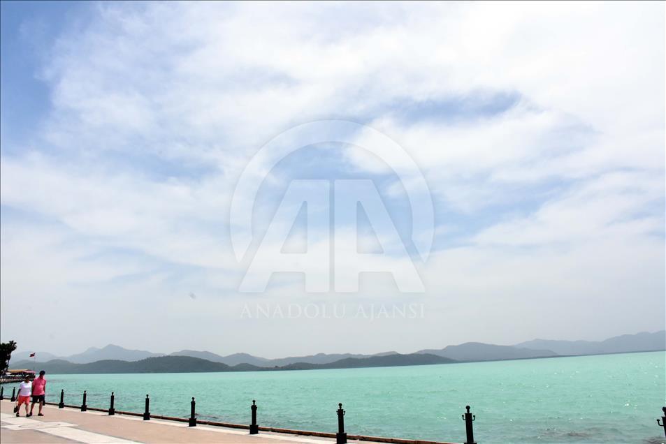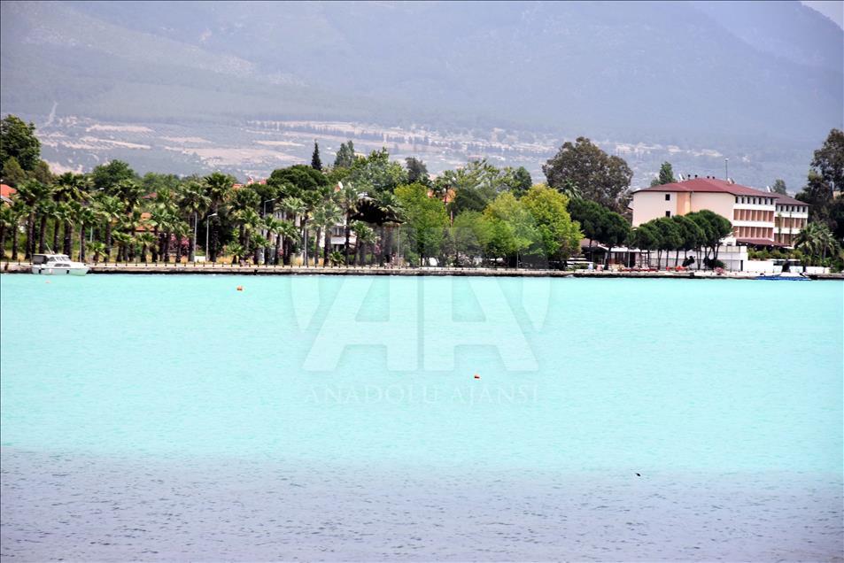 Dalyan Kanalı aracılığıyla Ege Denizi'ne bağlanan Köyceğiz Gölü'nde, suyun rengi turkuaza dönüştü. Göldeki renk değişikliği dolayısıyla bölgede yaşayan vatandaşlar ve tatil için gelen turistler tekne turuna çıkarak fotoğraf çektirdi.
