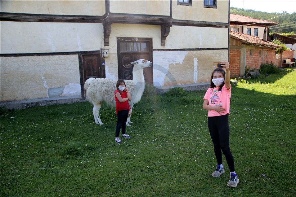 Kastamonu'daki bir at çiftliğinde yaşayan "Pamuk" isimli lama, ziyaretçiler ve köy sakinlerinin ilgi odağı oldu.
