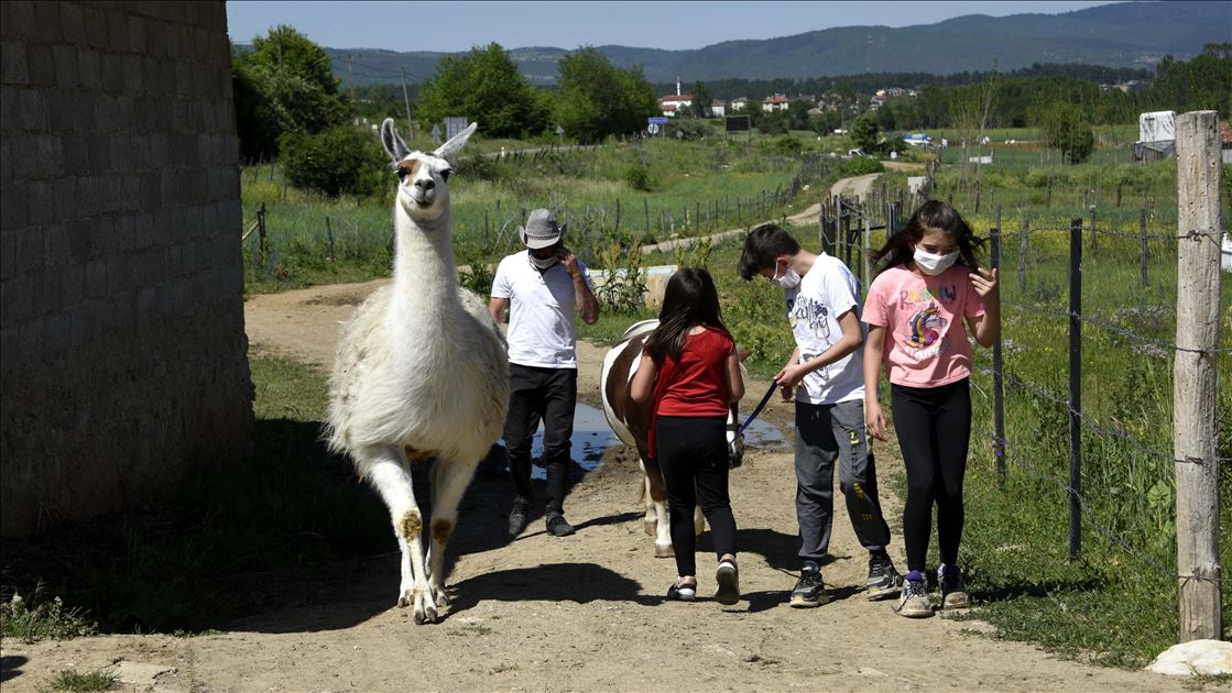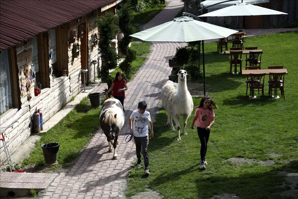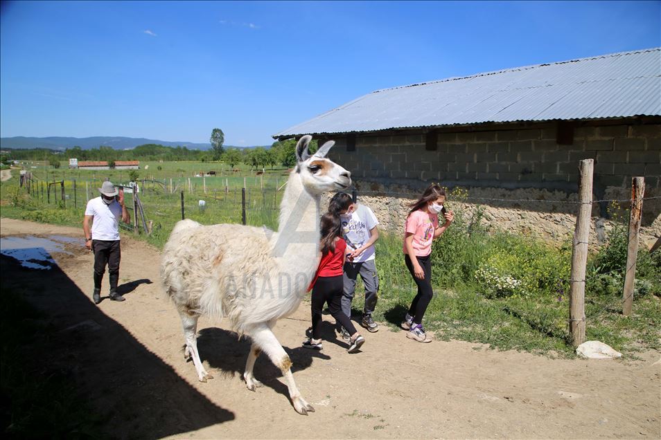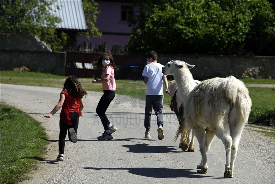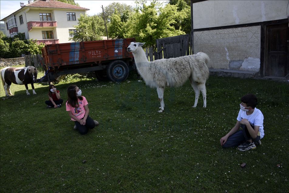 Kastamonu'daki bir at çiftliğinde yaşayan "Pamuk" isimli lama, ziyaretçiler ve köy sakinlerinin ilgi odağı oldu. ( Özgür Alantor - Anadolu Ajansı )Özgür Alantor