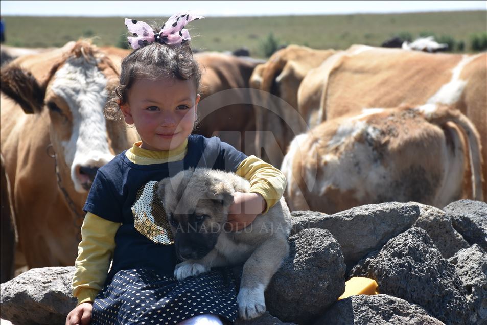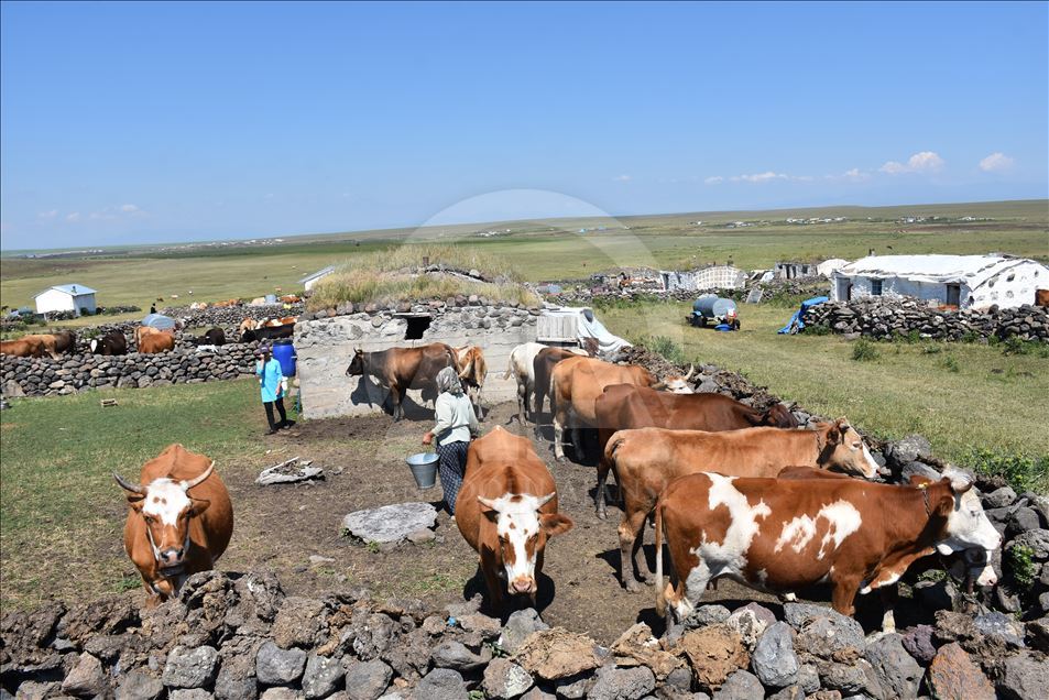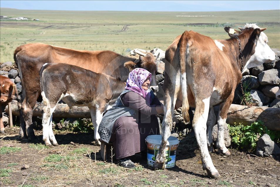 Tarım ve hayvancılığın önemli merkezlerinden Kars'ta, yaz aylarında özellikle hayvancılıktan daha iyi verim almak amacıyla yüksek bölgelere çıkan köylülerin "yayla mesaisi" devam ediyor.