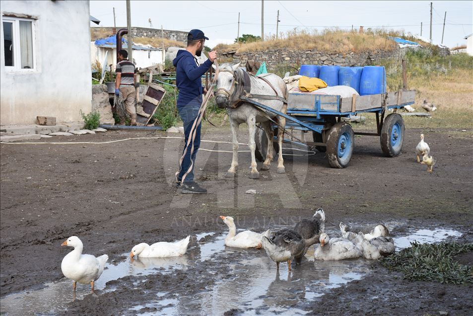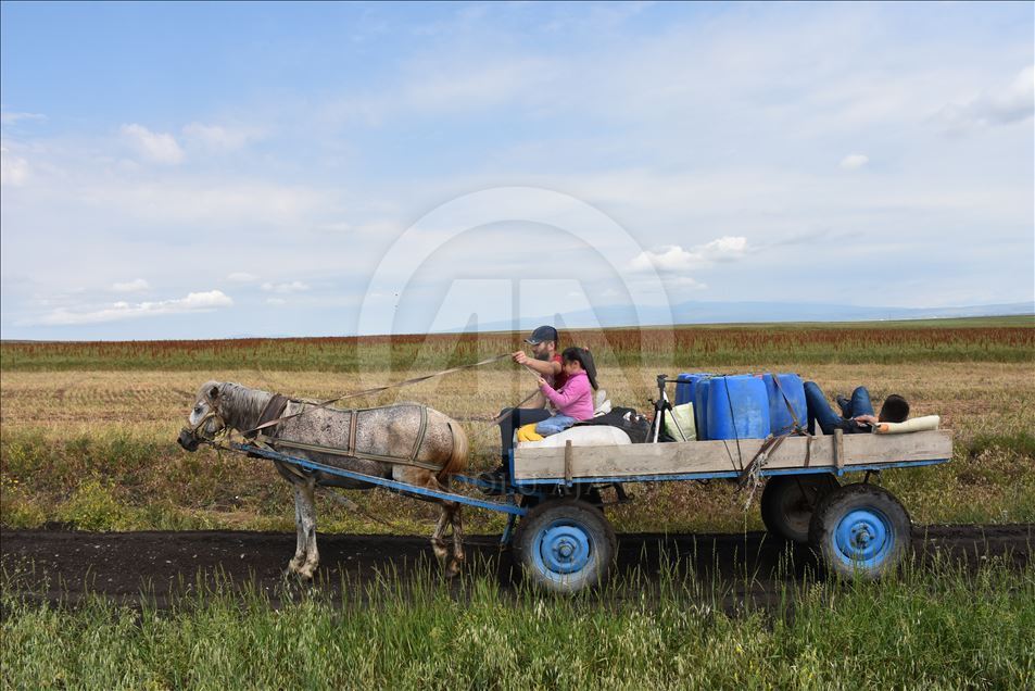 Tarım ve hayvancılığın önemli merkezlerinden Kars'ta, yaz aylarında özellikle hayvancılıktan daha iyi verim almak amacıyla yüksek bölgelere çıkan köylülerin "yayla mesaisi" devam ediyor. Yaylalarda içme suyunun olmaması sebebiyle köylüler sabahın erken saatlerinde at arabası veya traktörlere yükledikleri suları taşıyarak içme suyu ihtiyaçlarını karşılıyor. ( İsmail Kaplan - Anadolu Ajansı )İsmail Kaplan