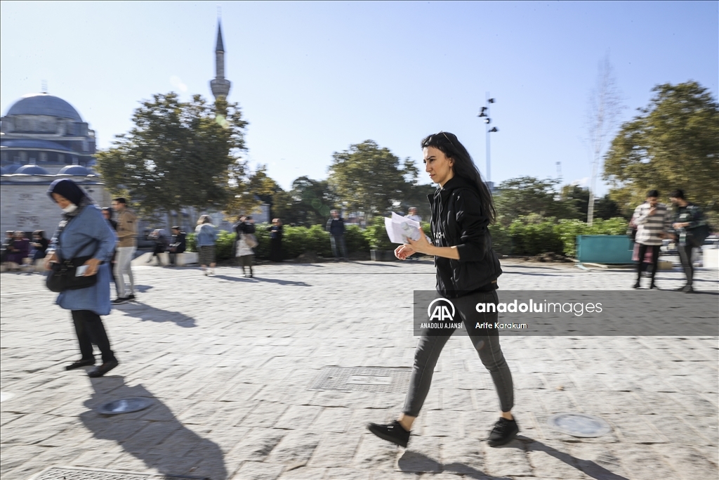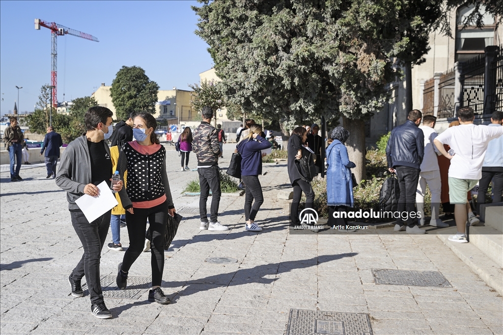 İstanbul'da adaylar, KPSS 2022 Lisans Alan Bilgisi birinci oturumuna katıldı. İstanbul'daki sınav merkezlerinden olan İstanbul Üniversitesi Beyazıt Yerleşkesi önüne sabahın ilk saatlerinden itibaren gelen adaylar, kimlik, sınav giriş belgesi ve sınava yasaklı her türlü cihaz ve eşya kontrolünün ardından içeri alındı. ( Arife Karakum - Anadolu Ajansı )Arife Karakum