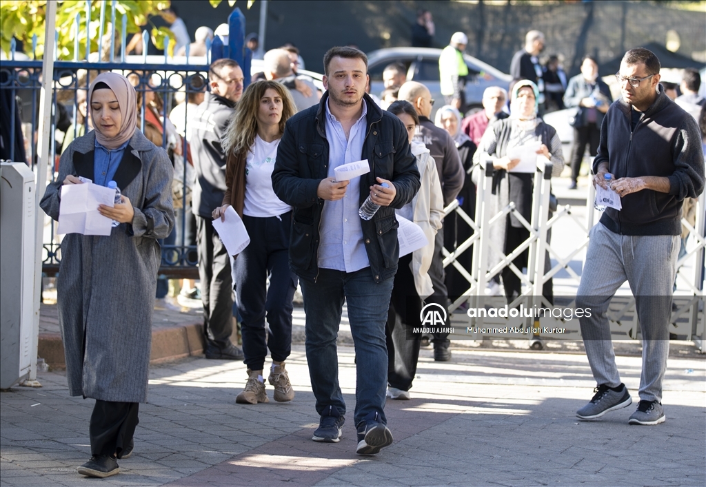 Ölçme, Seçme ve Yerleştirme Merkezince (ÖSYM) 31 Temmuz'da düzenlenen oturumlarının iptal edilmesinin ardından ertelenen Kamu Personel Seçme Sınavı (KPSS) Lisans Alan Bilgisi birinci oturumu başladı. ( Muhammed Abdullah Kurtar - Anadolu Ajansı )Muhammed Abdullah Kurtar