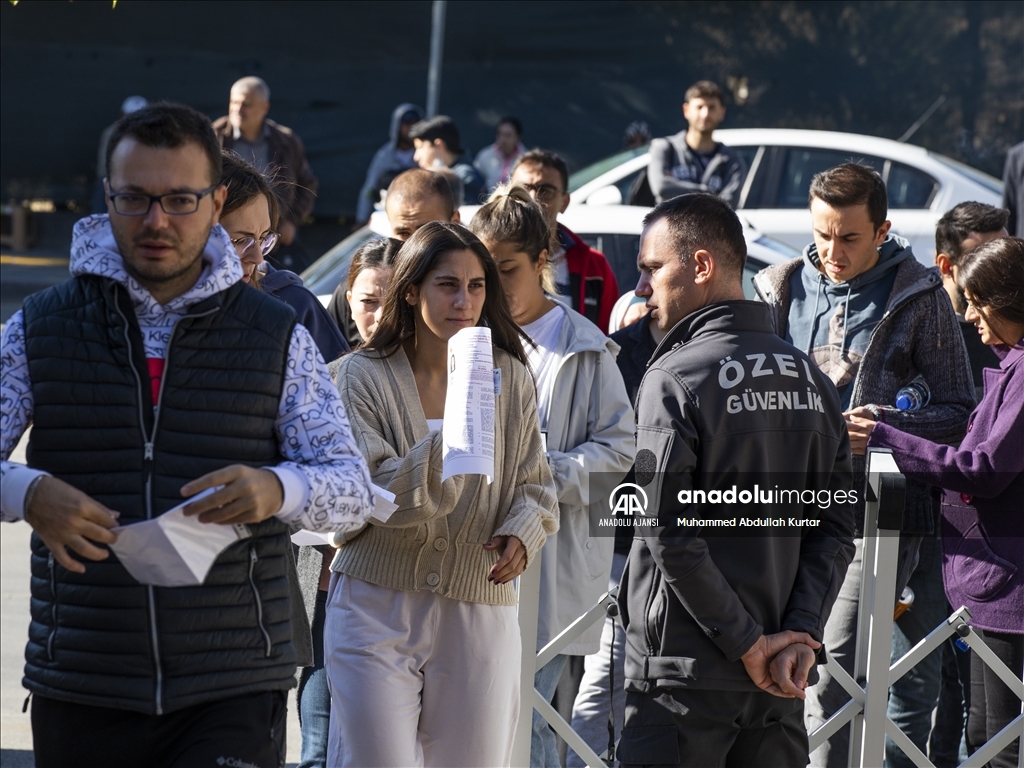 İstanbul'da adaylar, KPSS 2022 Lisans Alan Bilgisi birinci oturumuna katıldı. İstanbul'daki sınav merkezlerinden olan İstanbul Üniversitesi Beyazıt Yerleşkesi önüne sabahın ilk saatlerinden itibaren gelen adaylar, kimlik, sınav giriş belgesi ve sınava yasaklı her türlü cihaz ve eşya kontrolünün ardından içeri alındı. Sınav için yanında telefon ve farklı cihazlar getirenler, sınav merkezi dışındaki emanetlere eşyalarını teslim etti. ( Arife Karakum - Anadolu Ajansı )Arife Karakum