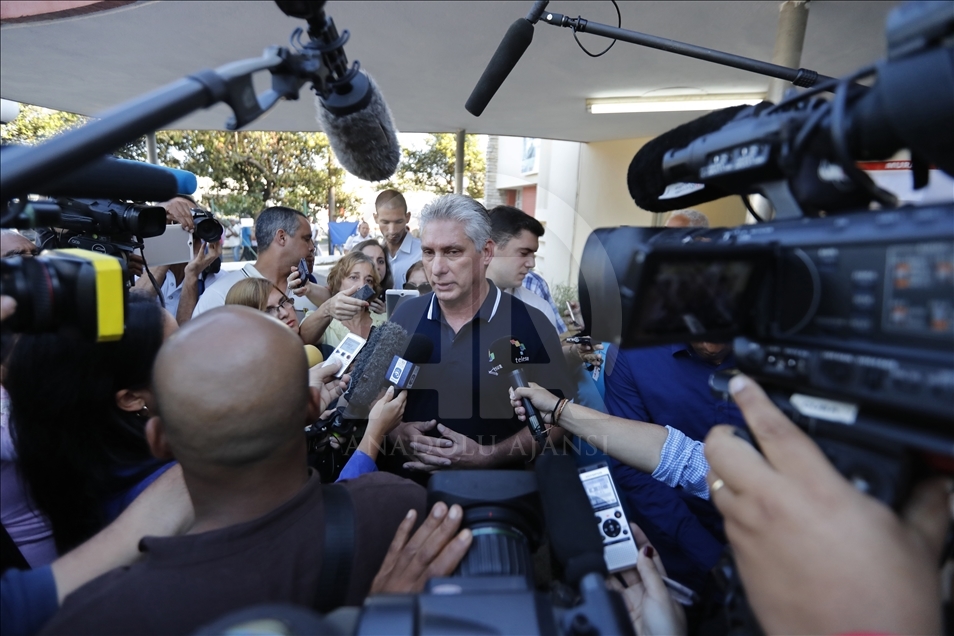 Küba'nın başkenti Havana'da vatandaşlar, anayasa değişikliği referandumunda oy kullanmak üzere sandık başına gitti. Küba Devlet Başkanı Miguel Diaz-Canel (ortada) oy kullanmasının ardından basın mensuplarına açıklamalarda bulundu. ( Yander Zamora - Anadolu Ajansı )Yander Zamora