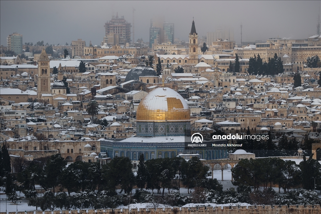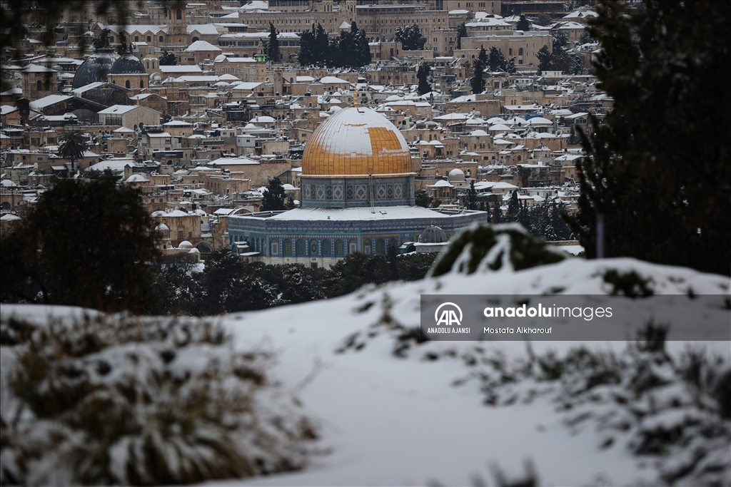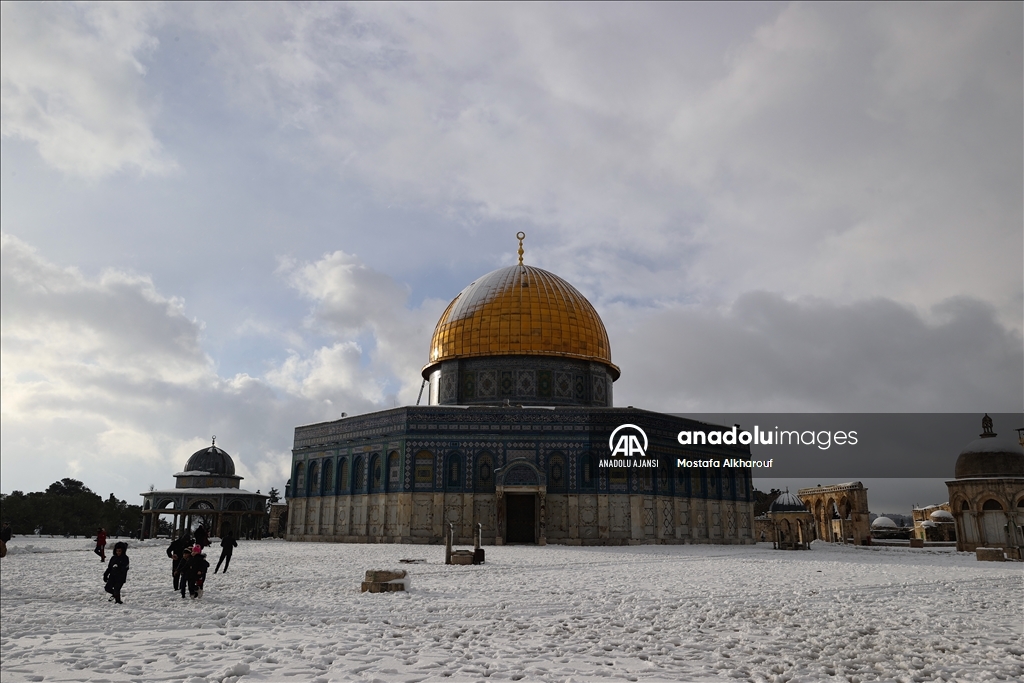 Kudüs'te yağan kar Mescid-i Aksa'da sevince dönüştü