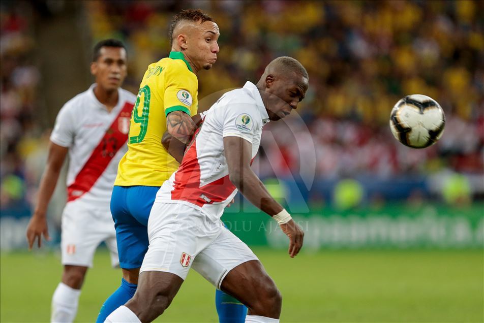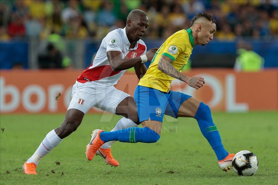 Güney Amerika Futbol Konfederasyonu (CONMEBOL) tarafından düzenlenen Kupa Amerika (Copa America) turnuvası final maçında Brezilya ile Peru, Rio de Janeiro'daki Maracana Stadyum'da karşı karşıya geldi. Bir pozisyonda Brezilya takımından Everton (solda), rakibi Advincula (sağda) ile mücadele etti. ( Marcello Zambrana - Anadolu Ajansı )Marcello Zambrana