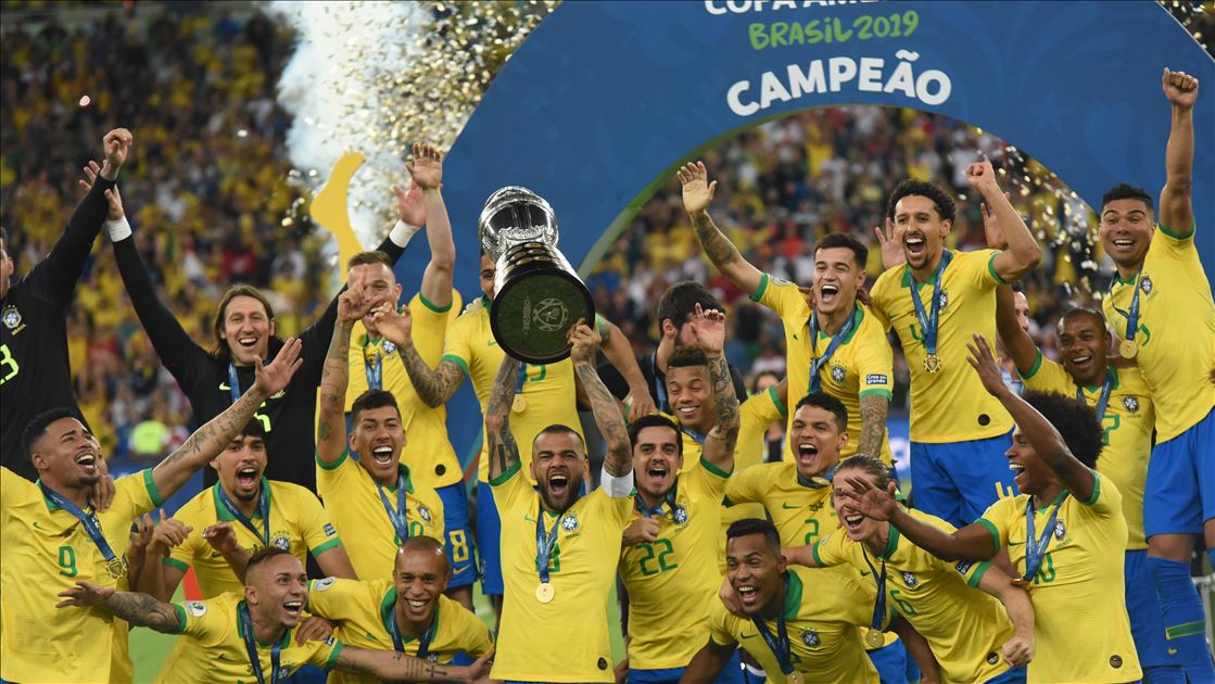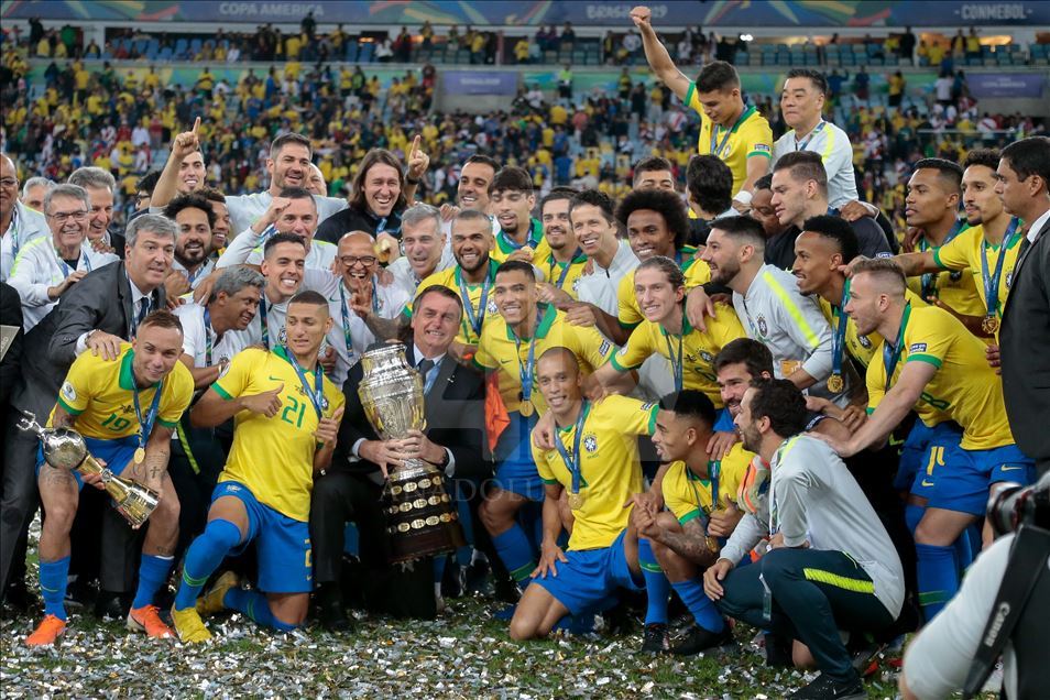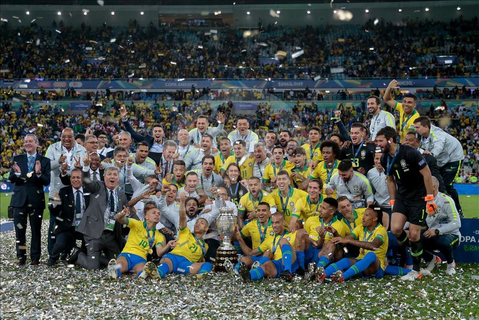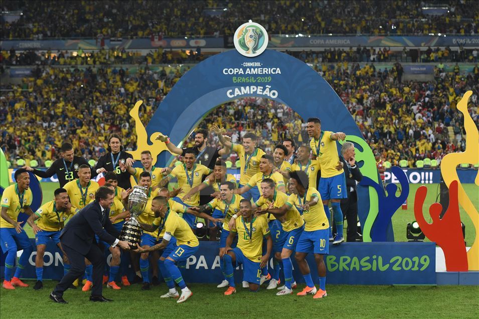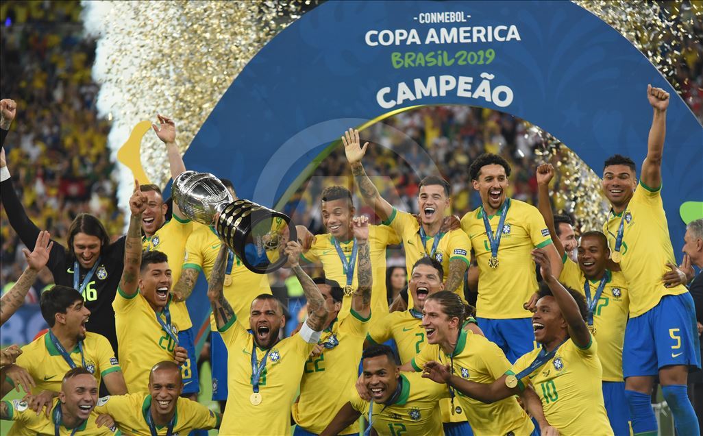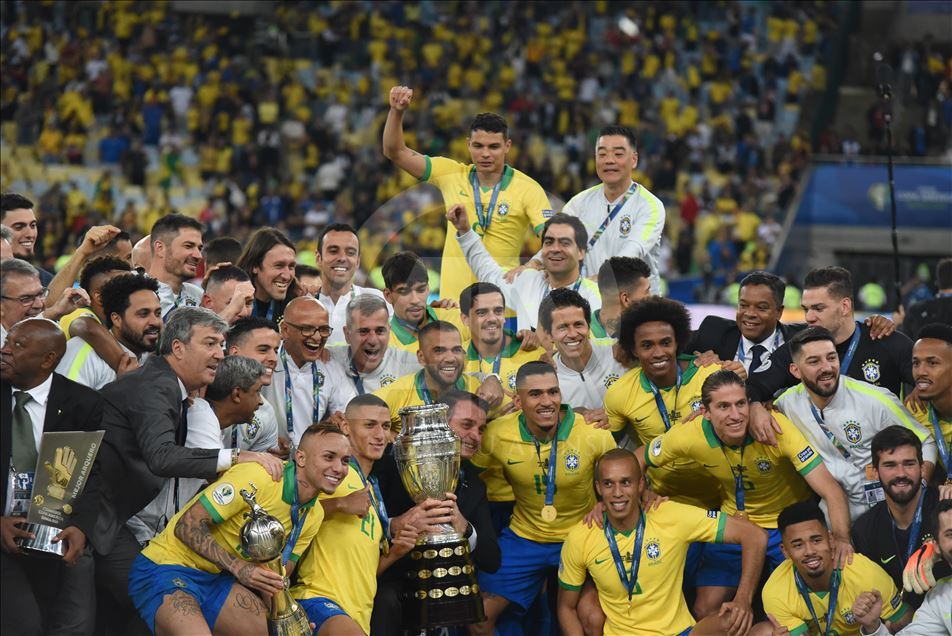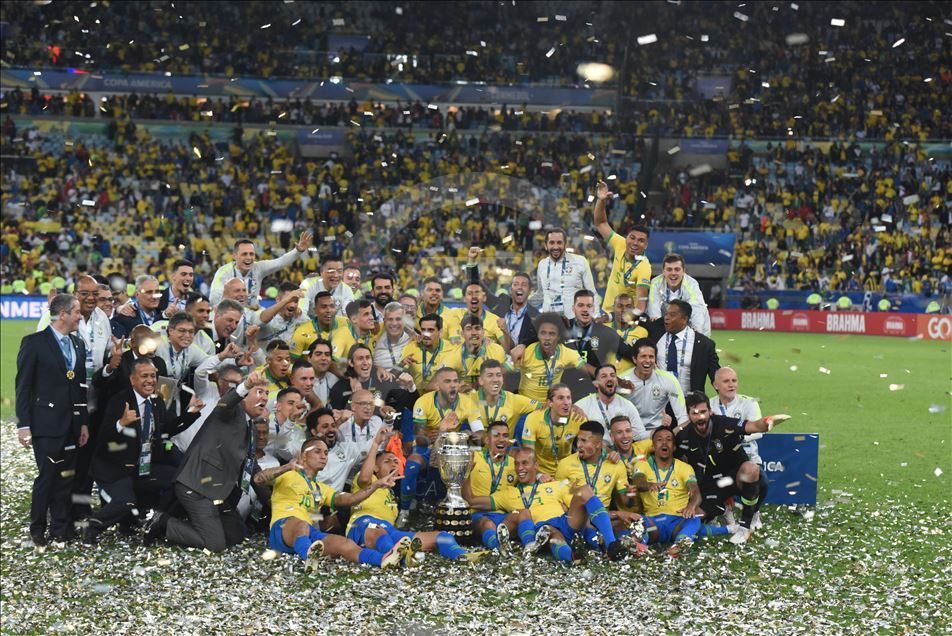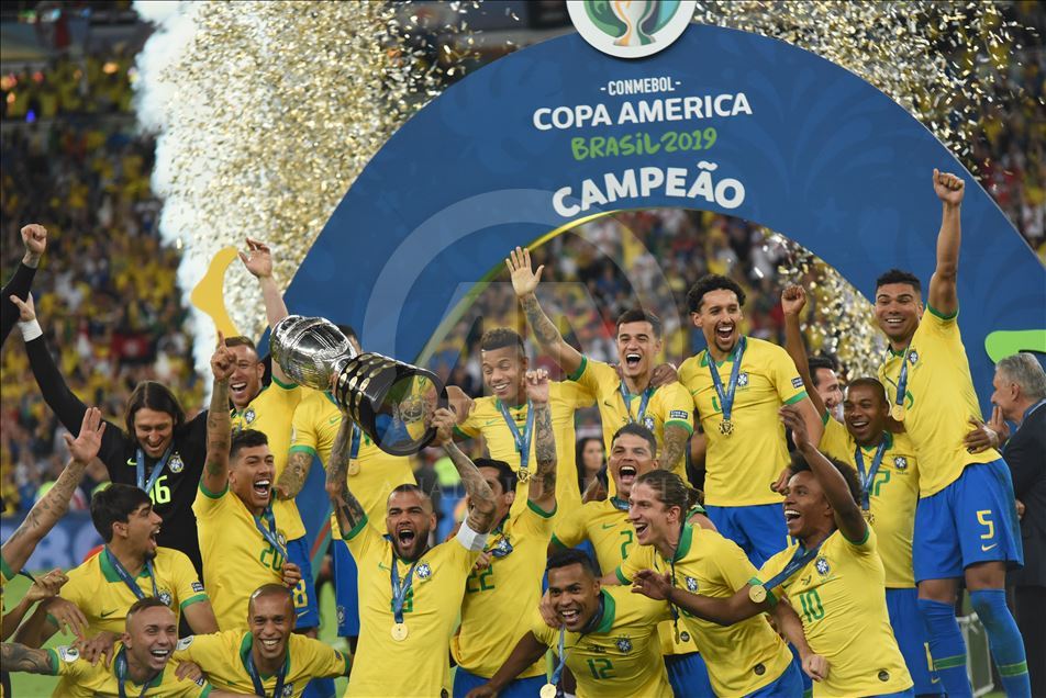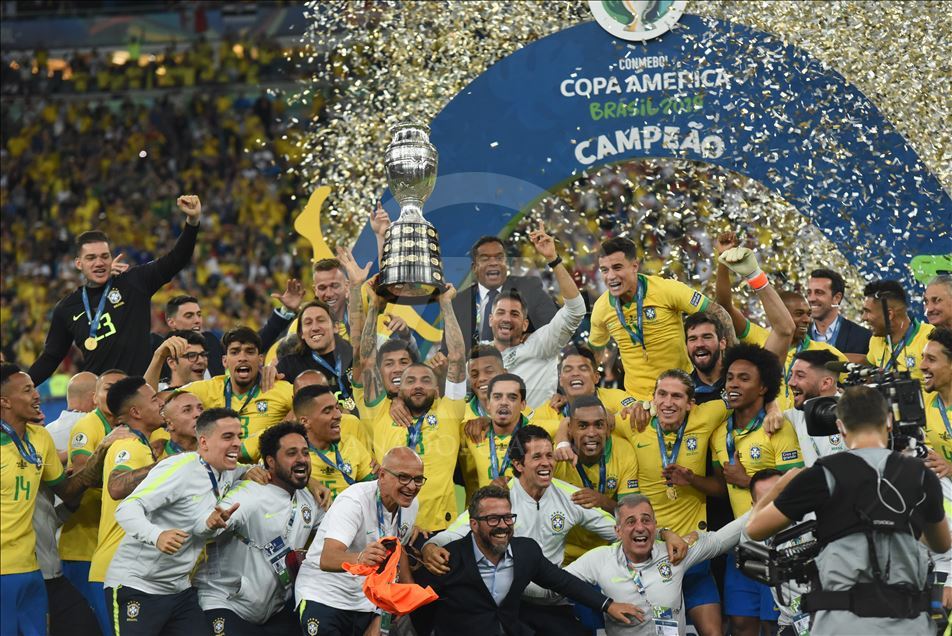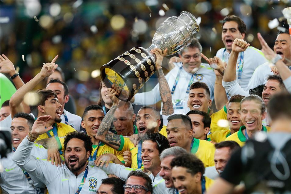 Güney Amerika Futbol Konfederasyonu (CONMEBOL) tarafından düzenlenen Kupa Amerika (Copa America) turnuvası final maçında Brezilya ile Peru, Rio de Janeiro'daki Maracana Stadyum'da karşı karşıya geldi. Karşılaşma sonunda Brezilya, Peru'yu 3-1 mağlup ederek 9. şampiyonluğunu elde etti. Brezilyalı futbolcular, şampiyonluk kupasını kaldırdı. ( Marcello Zambrana - Anadolu Ajansı )Marcello Zambrana