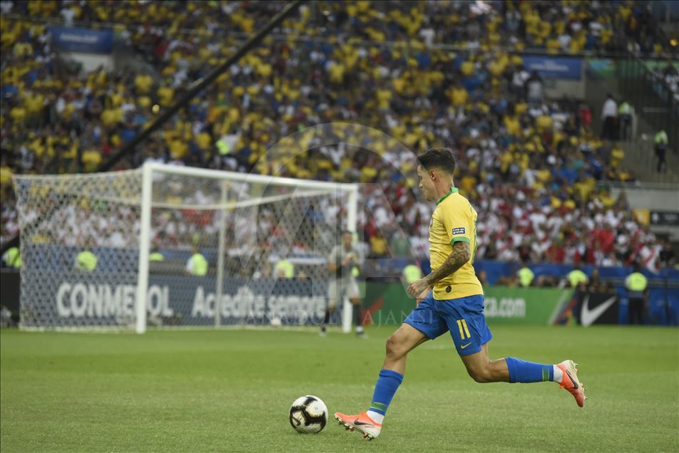 Güney Amerika Futbol Konfederasyonu (CONMEBOL) tarafından düzenlenen Kupa Amerika (Copa America) turnuvası final maçında Brezilya ile Peru, Rio de Janeiro'daki Maracana Stadyum'da karşı karşıya geldi. Bir pozisyonda Brezilya takımından Philippe Coutinho (11), rakipleri ile mücadele etti. ( Fabio Teixeira - Anadolu Ajansı )Fabio Teixeira