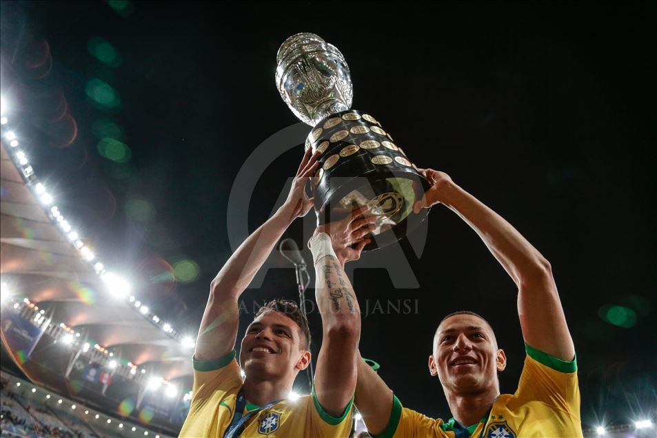 Güney Amerika Futbol Konfederasyonu (CONMEBOL) tarafından düzenlenen Kupa Amerika (Copa America) turnuvası final maçında Brezilya ile Peru, Rio de Janeiro'daki Maracana Stadyum'da karşı karşıya geldi. Karşılaşma sonunda Brezilya, Peru'yu 3-1 mağlup ederek 9. şampiyonluğunu elde etti. Brezilyalı futbolcular, şampiyonluk kupasını kaldırdı. ( Fabio Teixeira - Anadolu Ajansı )Fabio Teixeira