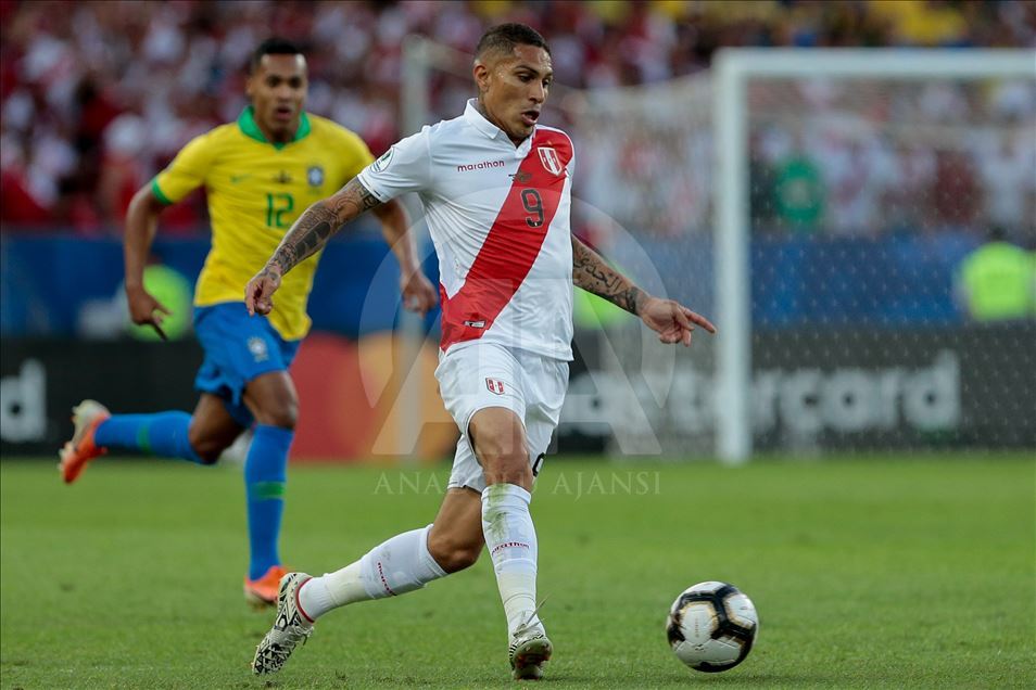 Güney Amerika Futbol Konfederasyonu (CONMEBOL) tarafından düzenlenen Kupa Amerika (Copa America) turnuvası final maçında Brezilya ile Peru, Rio de Janeiro'daki Maracana Stadyum'da karşı karşıya geldi. Bir pozisyonda Peru takımından Paolo Guerrero (önde), rakipleri ile mücadele etti. ( Marcello Zambrana - Anadolu Ajansı )Marcello Zambrana