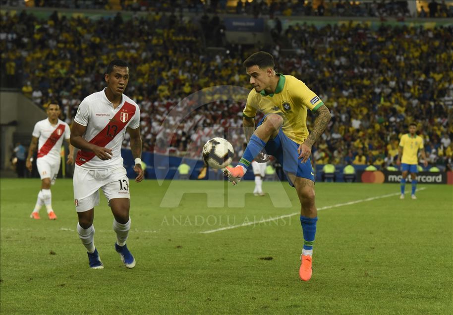 Güney Amerika Futbol Konfederasyonu (CONMEBOL) tarafından düzenlenen Kupa Amerika (Copa America) turnuvası final maçında Brezilya ile Peru, Rio de Janeiro'daki Maracana Stadyum'da karşı karşıya geldi. Bir pozisyonda Brezilya takımından Philippe Coutinho (sağda), rakibi ile mücadele etti. ( Fabio Teixeira - Anadolu Ajansı )Fabio Teixeira