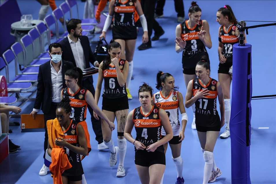 AXA Sigorta Kadınlar Kupa Voley finalinde, Eczacıbaşı VitrA ile VakıfBank, Burhan Felek Voleybol Salonu'nda karşı karşıya geldi. Eczacıbaşı VitrA oyuncuları kaybettikleri setin ardından üzüntü yaşadı. ( Elif Öztürk - Anadolu Ajansı )Elif Öztürk