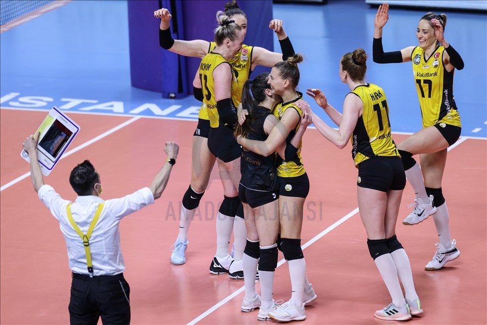 AXA Sigorta Kadınlar Kupa Voley finalinde, Eczacıbaşı VitrA ile VakıfBank, Burhan Felek Voleybol Salonu'nda karşı karşıya geldi. VakıfBank oyuncuları bir pozisyonun ardından sevinç yaşadı. ( Elif Öztürk - Anadolu Ajansı )Elif Öztürk