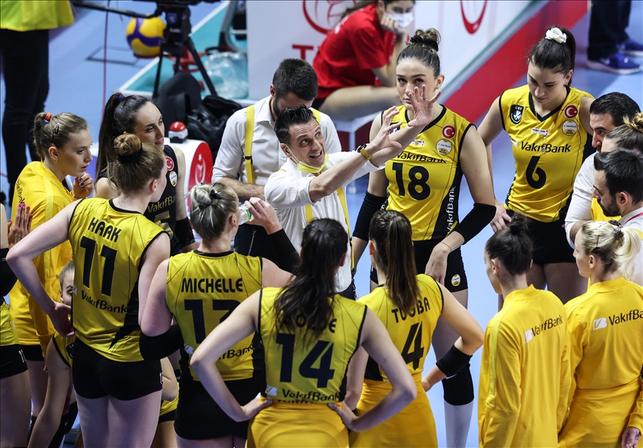 AXA Sigorta Kadınlar Kupa Voley finalinde, Eczacıbaşı VitrA ile VakıfBank, Burhan Felek Voleybol Salonu'nda karşı karşıya geldi. VakıfBank Başantrenörü Giovanni Guidetti oyuncularına taktik verdi. ( Elif Öztürk - Anadolu Ajansı )Elif Öztürk