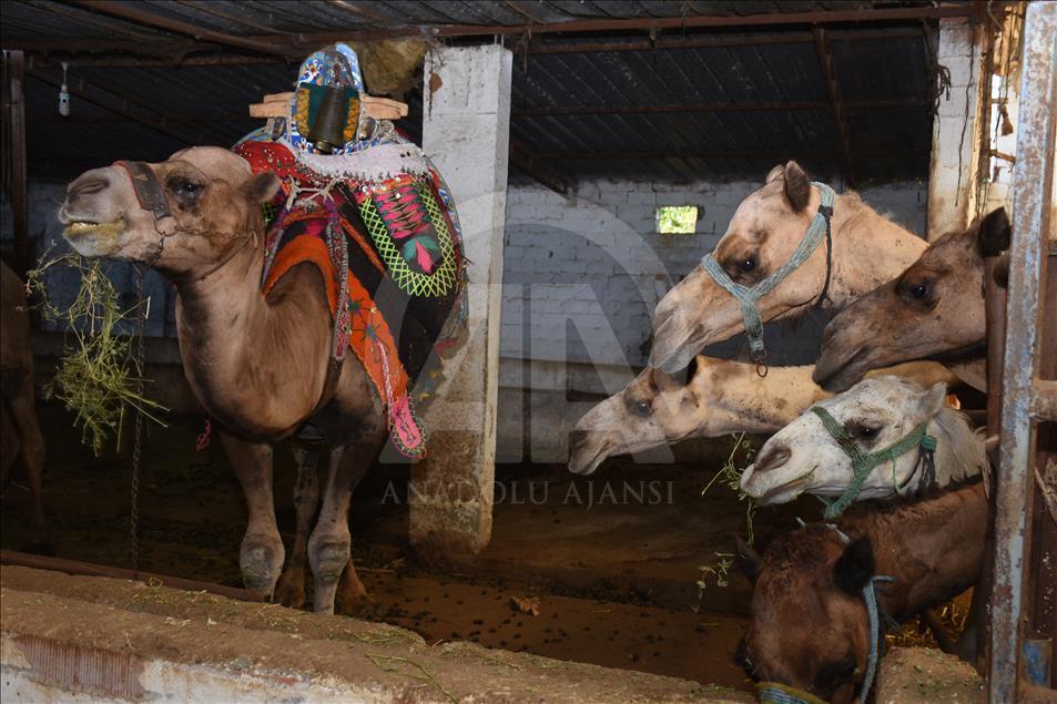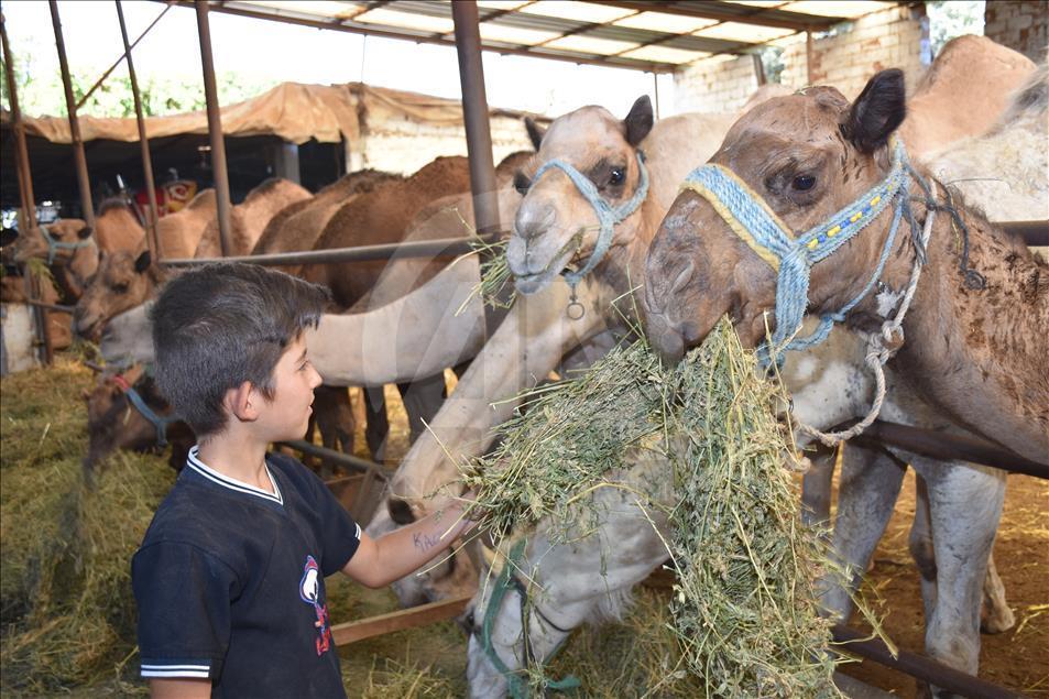 Kurban Bayramı'nda deve kesmek isteyen vatandaşlar, Aydın'ın İncirliova ilçesindeki yetiştirme çiftliğinde satışa sunulan sınırlı sayıdaki deveye ilgi gösteriyor ( Necip Uyanık - Anadolu Ajansı )Necip Uyanık