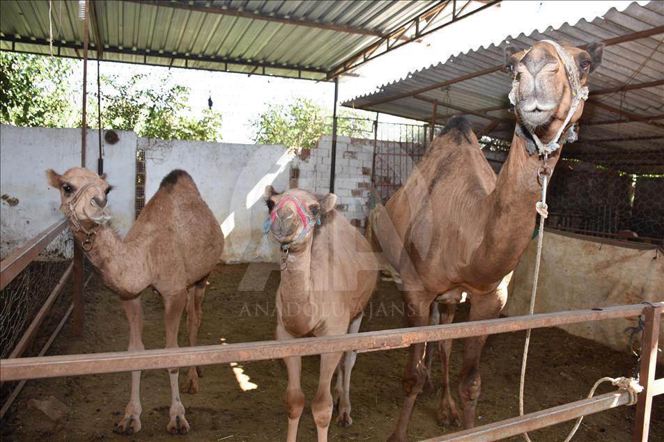 Kurban Bayramı'nda deve kesmek isteyen vatandaşlar, Aydın'ın İncirliova ilçesindeki yetiştirme çiftliğinde satışa sunulan sınırlı sayıdaki deveye ilgi gösteriyor. ( Necip Uyanık - Anadolu Ajansı )Necip Uyanık