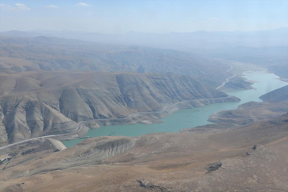 Van ve Hakkari illerinin, yüksek dorukları, akarsuları, ovaları, tarım arazileri, yeşillik alanları, yolları, mahalle ve köyleri, metrelerce yükseklikten helikopterle kuş bakışı görüntülendi. Fotoğrafta, Van'ın Gürpınar ilçesi sınırlarında bulunan Zernek Barajı'ndan genel bir görünüm yer almakta. (Özkan Bilgin - Anadolu Ajansı)Özkan Bilgin