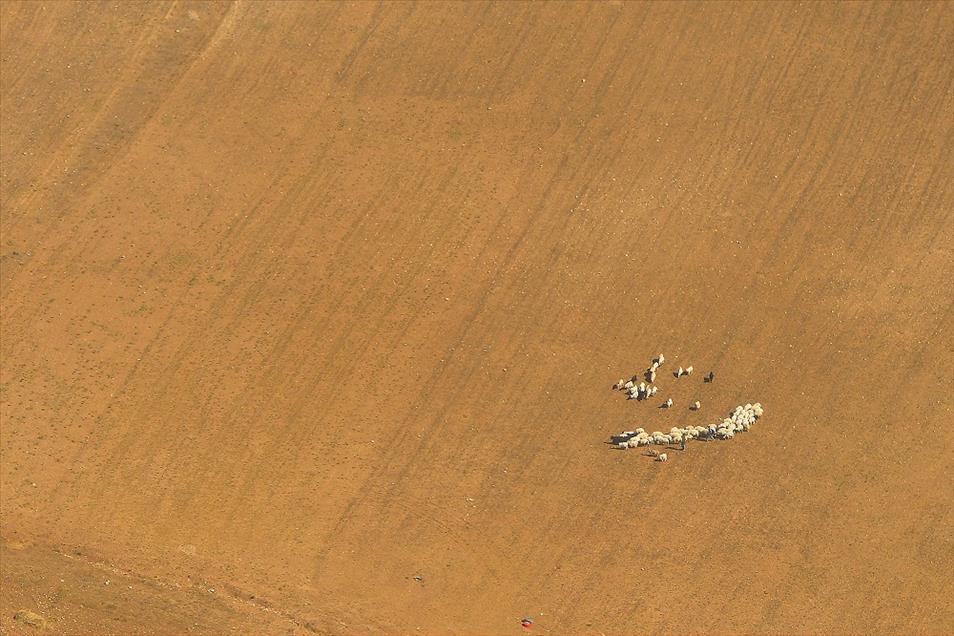 Van ve Hakkari illerinin, yüksek dorukları, akarsuları, ovaları, tarım arazileri, yeşillik alanları, yolları, mahalle ve köyleri, metrelerce yükseklikten helikopterle kuş bakışı görüntülendi. Fotoğrafta, Van'ın Gürpınar ilçesi kırsalında, arazide koyunlarını otlatmaya çalışan çoban ve sürüsü yer almakta. (Özkan Bilgin - Anadolu Ajansı)Özkan Bilgin