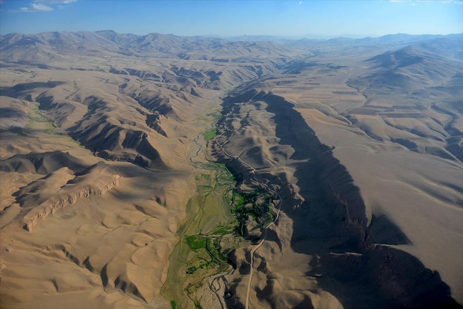 Van ve Hakkari illerinin, yüksek dorukları, akarsuları, ovaları, tarım arazileri, yeşillik alanları, yolları, mahalle ve köyleri, metrelerce yükseklikten helikopterle kuş bakışı görüntülendi. Fotoğrafta, Van'ın Gürpınar ilçesine bağlı Hoşap Mahalesi yakınlarında bulunan bir vadiden genel görünüm yer almakta. (Özkan Bilgin - Anadolu Ajansı)Özkan Bilgin