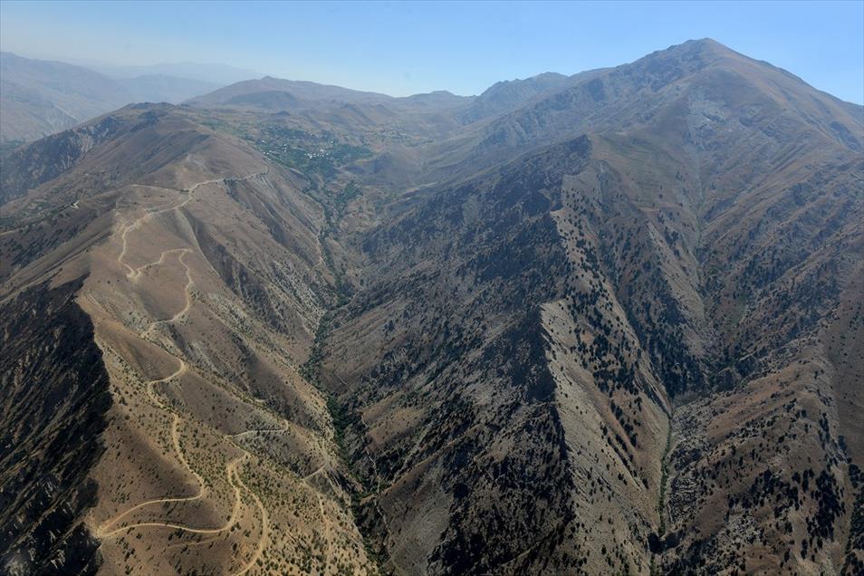 Van ve Hakkari illerinin, yüksek dorukları, akarsuları, ovaları, tarım arazileri, yeşillik alanları, yolları, mahalle ve köyleri, metrelerce yükseklikten helikopterle kuş bakışı görüntülendi. Fotoğrafta, Hakkari'nin yüksek doruklarından genel bir görünüm yer almakta. (Özkan Bilgin - Anadolu Ajansı)Özkan Bilgin