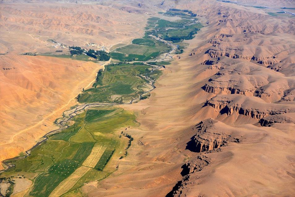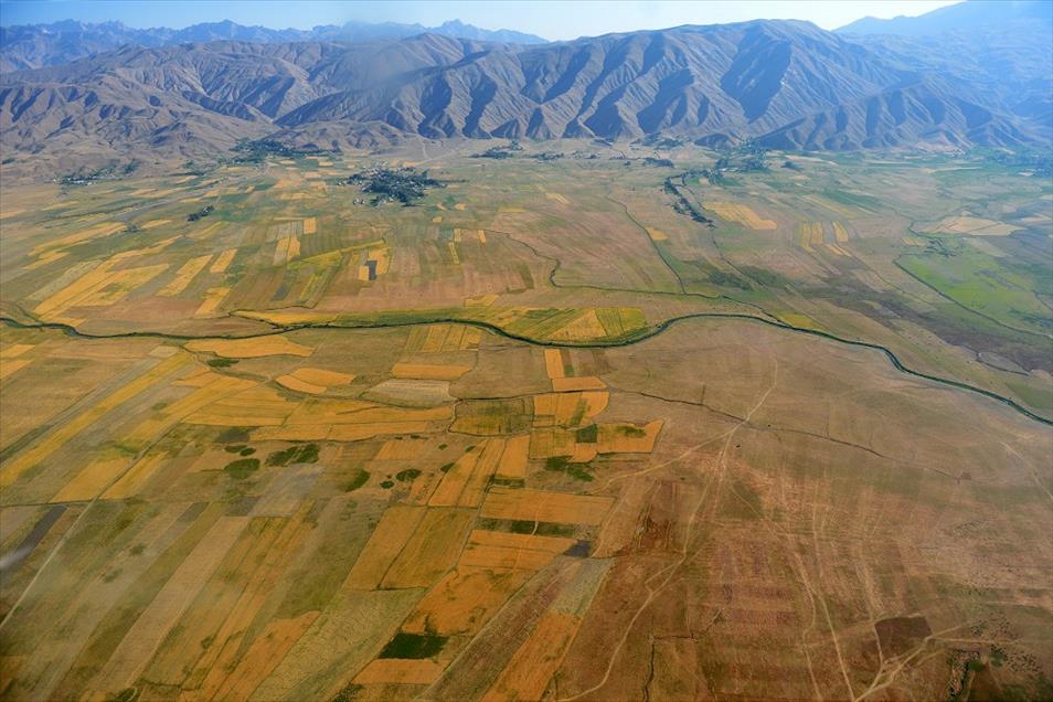Van ve Hakkari illerinin, yüksek dorukları, akarsuları, ovaları, tarım arazileri, yeşillik alanları, yolları, mahalle ve köyleri, metrelerce yükseklikten helikopterle kuş bakışı görüntülendi. Fotoğrafta, Hakkari'nin Yüksekova ilçesindeki tarım arazilerinden genel bir görünüm bulunmakta. (Özkan Bilgin - Anadolu Ajansı)Özkan Bilgin